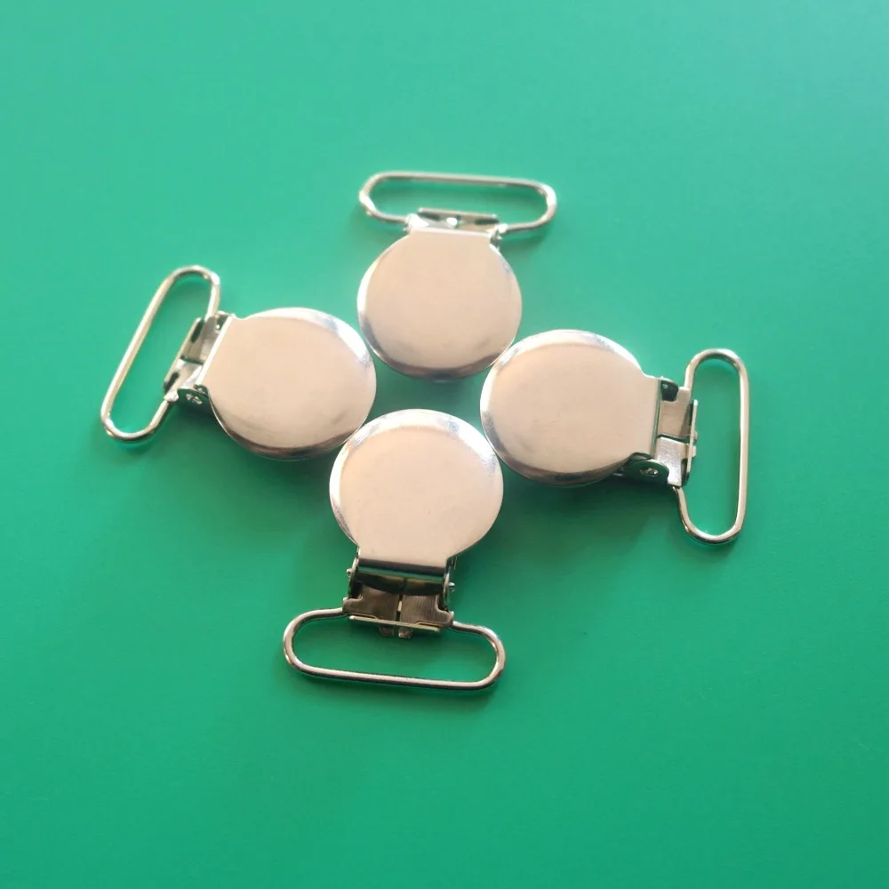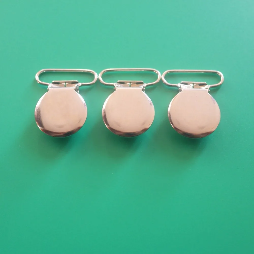 1″ 25MM Round Top Metal Suspender Clips Pacifier Clips,With Plastic Insert,In Nickel Color,50pcs/lot Free Shipping