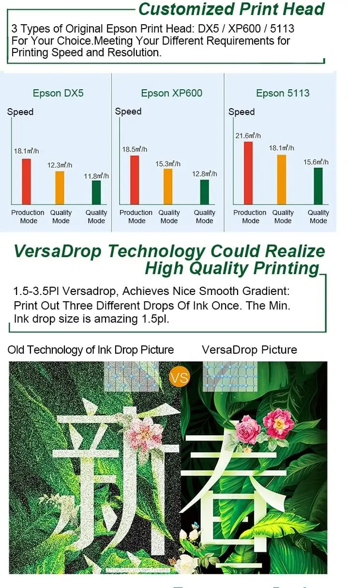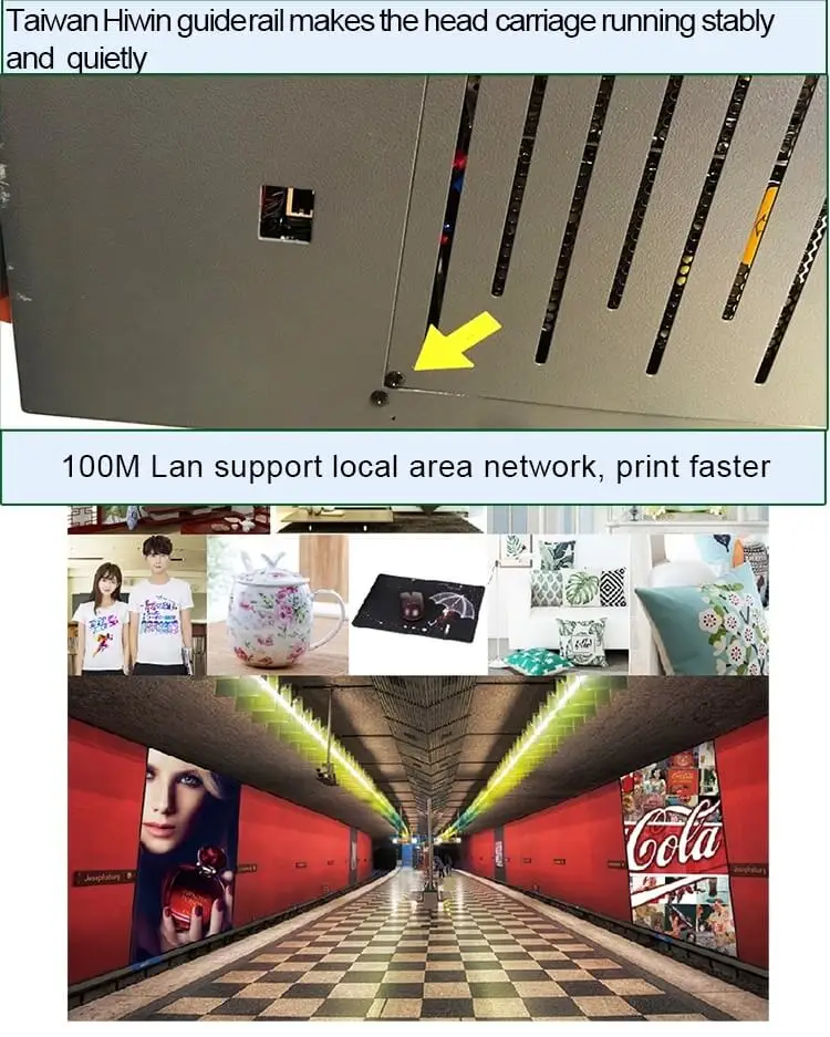 | Compatible ink | Eco-solvent ink / Water-based ink / Sublimation ink |
