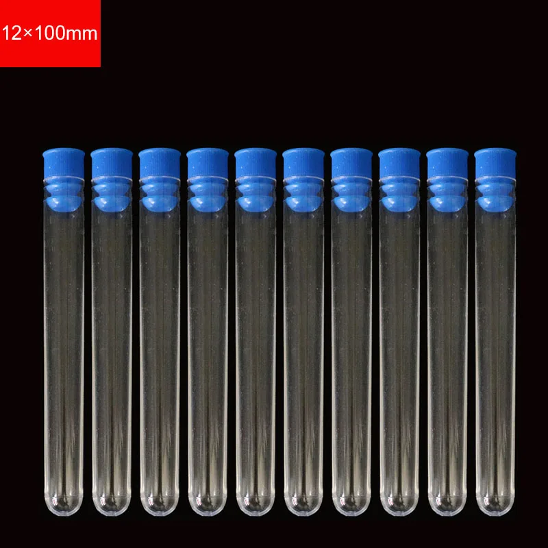 1 Pack/10pcs 12x100mm Experimental Equipment Disposable Transparent Plastic Test Tube Test Tube Scientific Laboratory Supplies