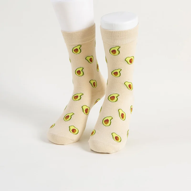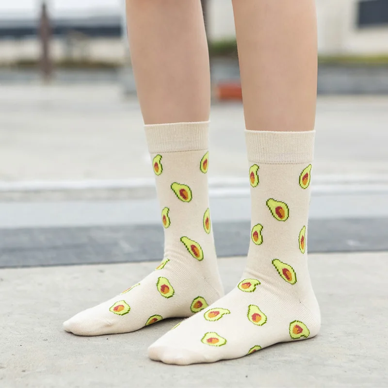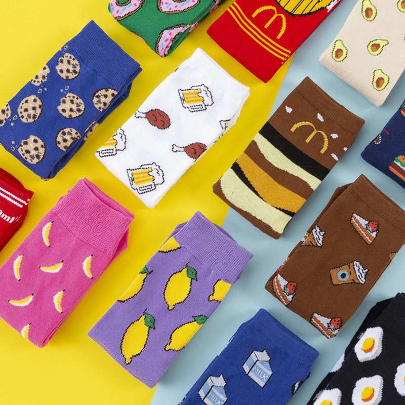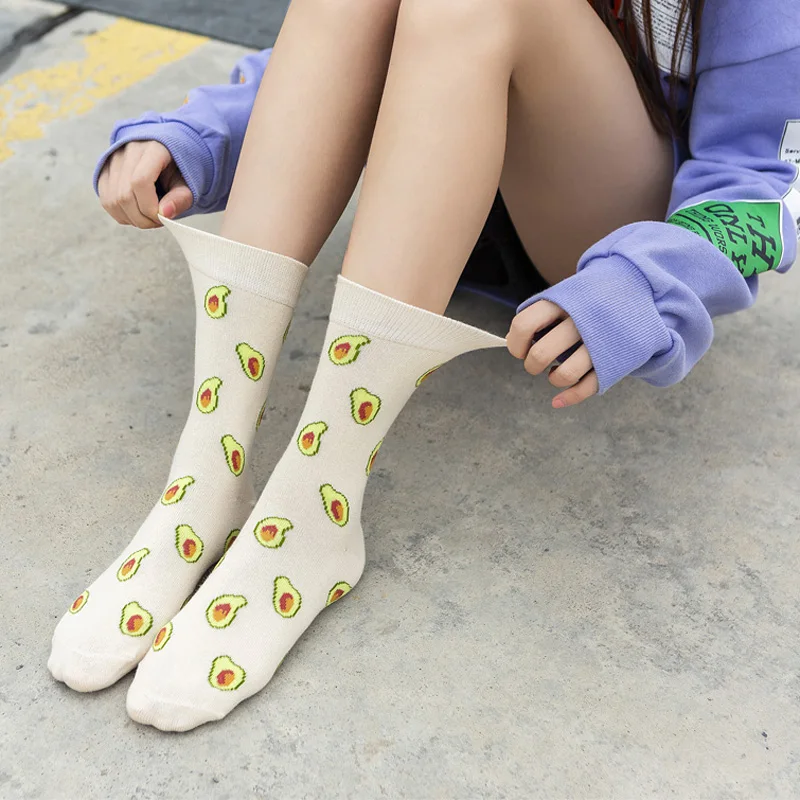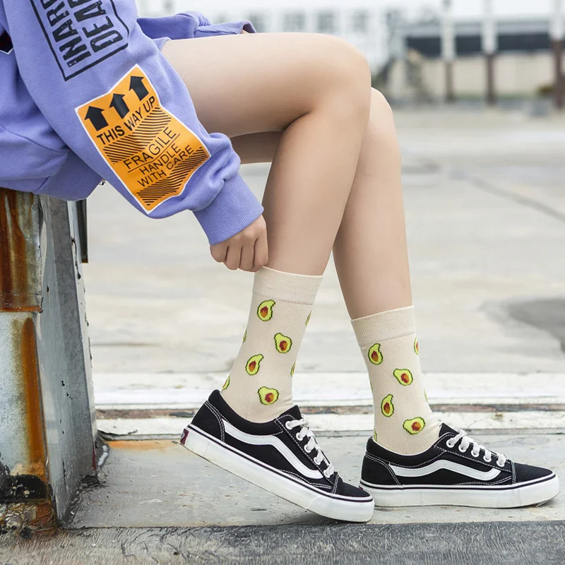 1 Pair Hot Sales Funny Socks Women Casual Cartoon Fruit Banana Avocado Lemon Egg Cookie Happy Japanese Harjuku Skateboard Socks