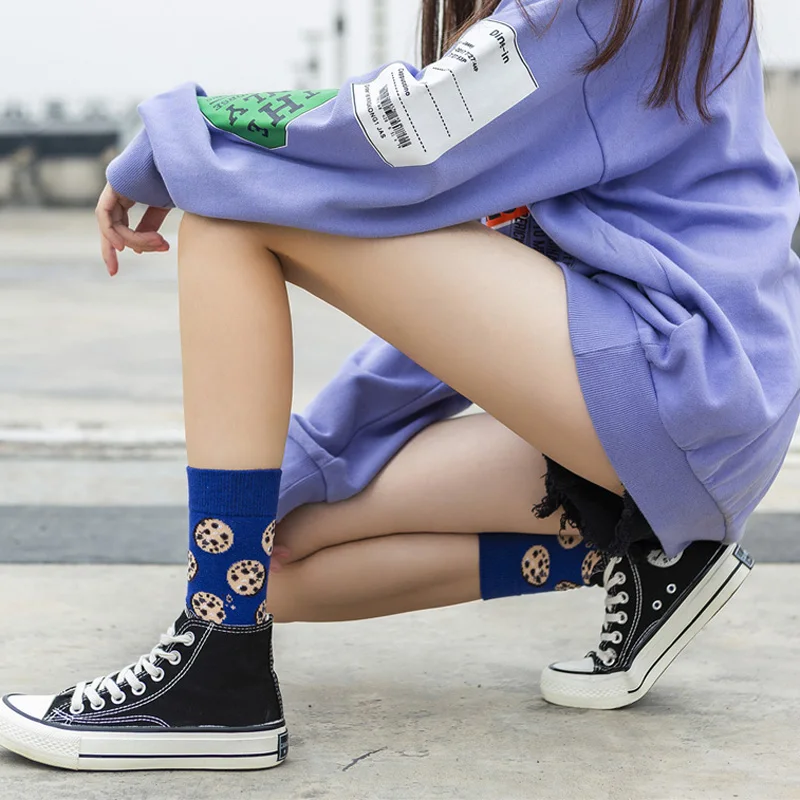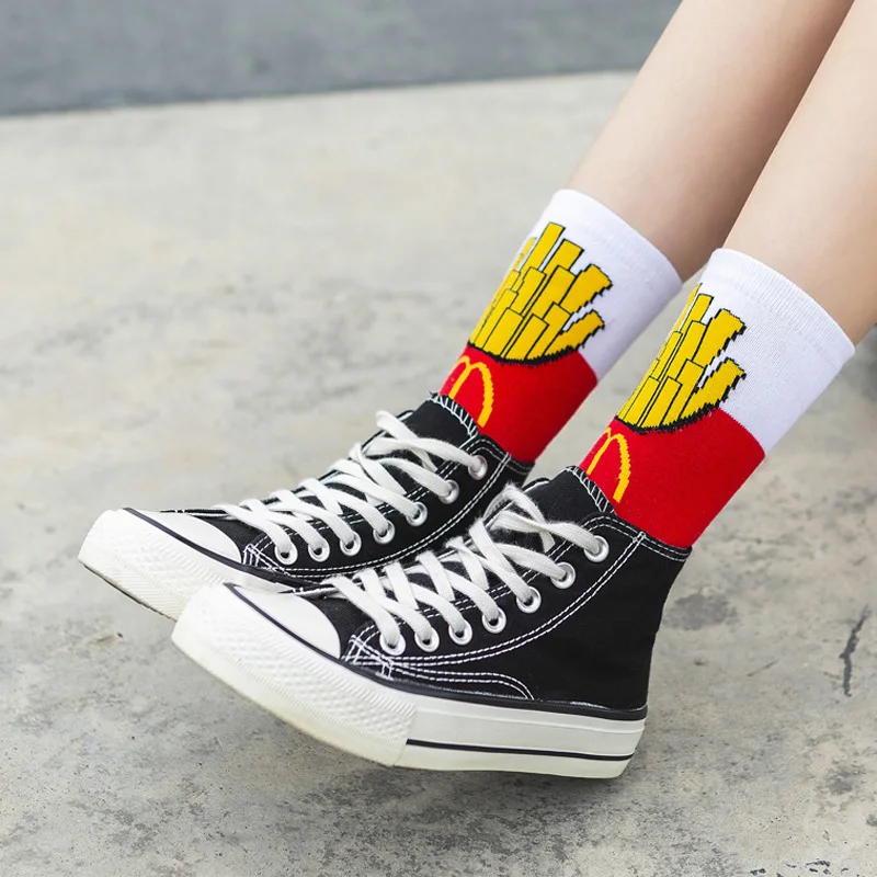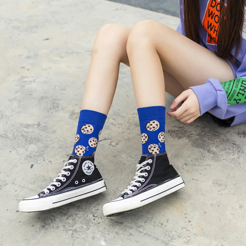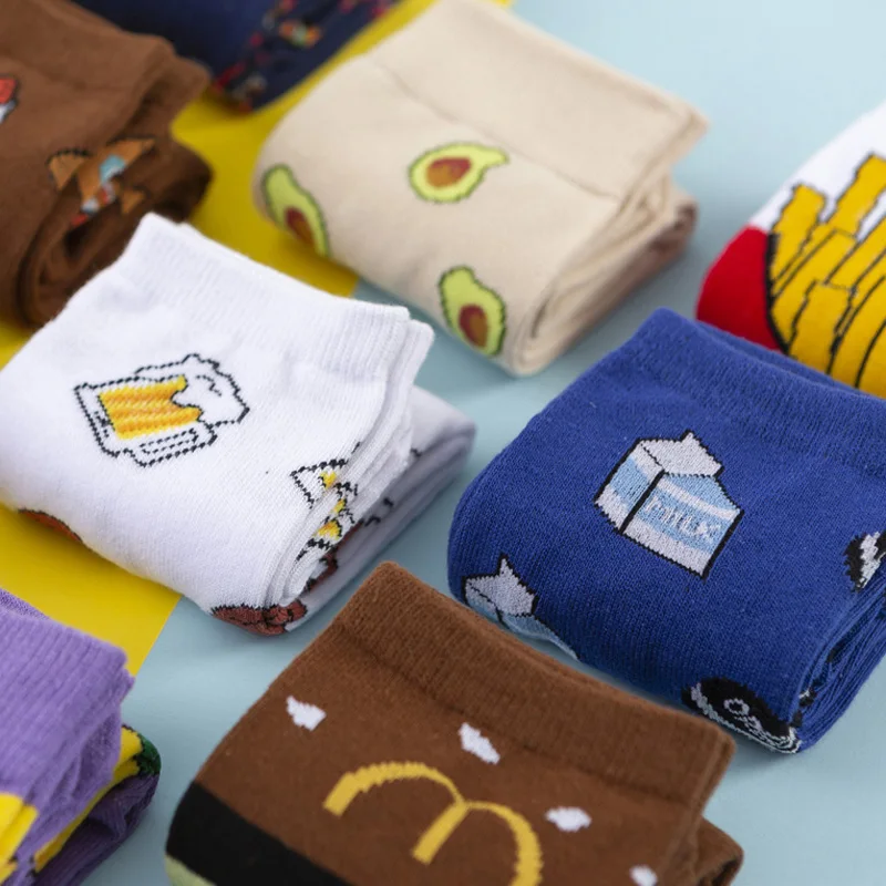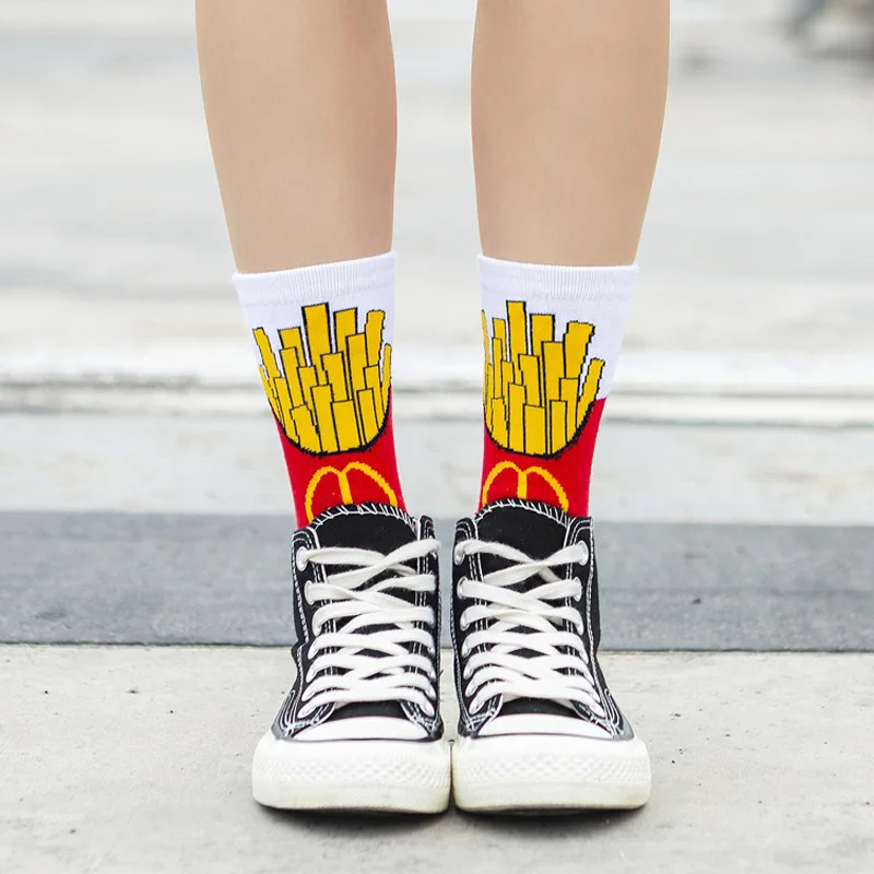 1 Pair Hot Sales Funny Socks Women Casual Cartoon Fruit Banana Avocado Lemon Egg Cookie Happy Japanese Harjuku Skateboard Socks