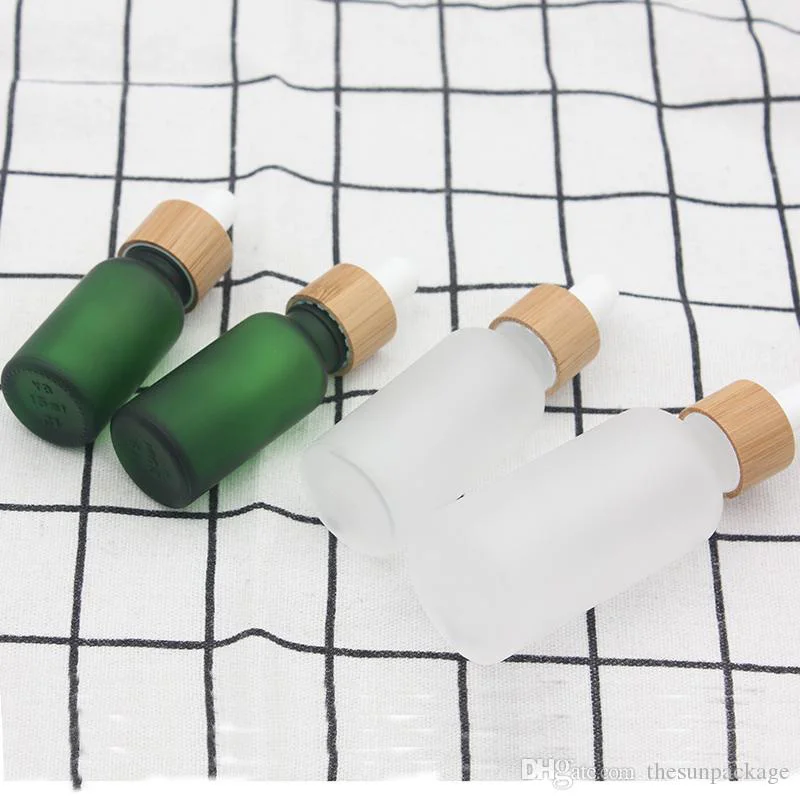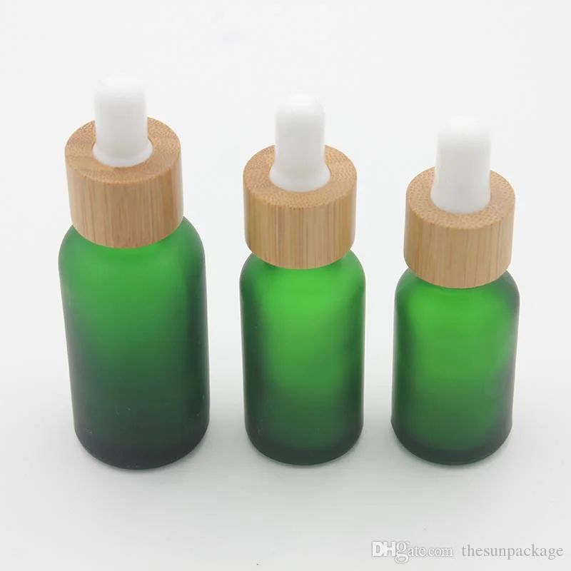 10 15ml 20 30ml Frosted Clear Glass Dropper Bottle with Bamboo Lid Cap Essential Oil Glass Bottle Frosted Green