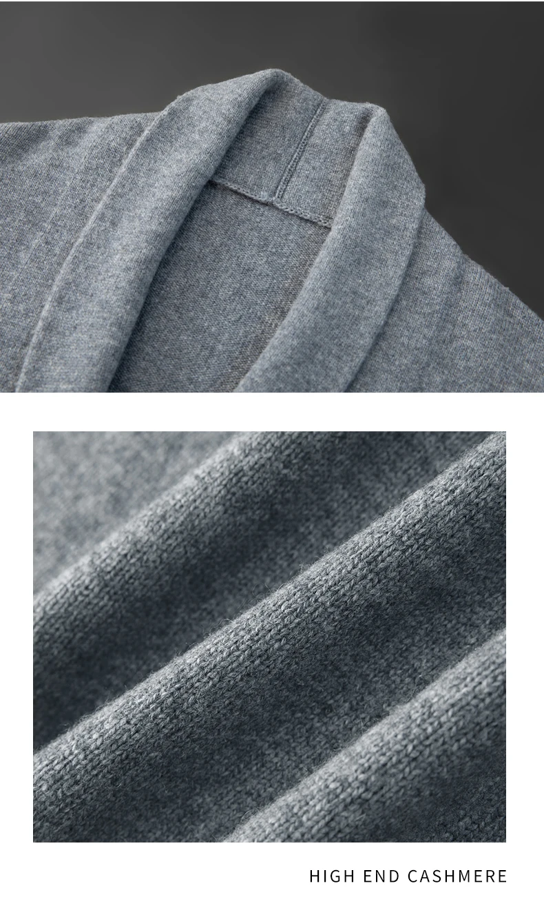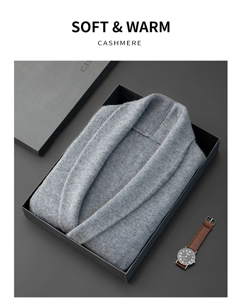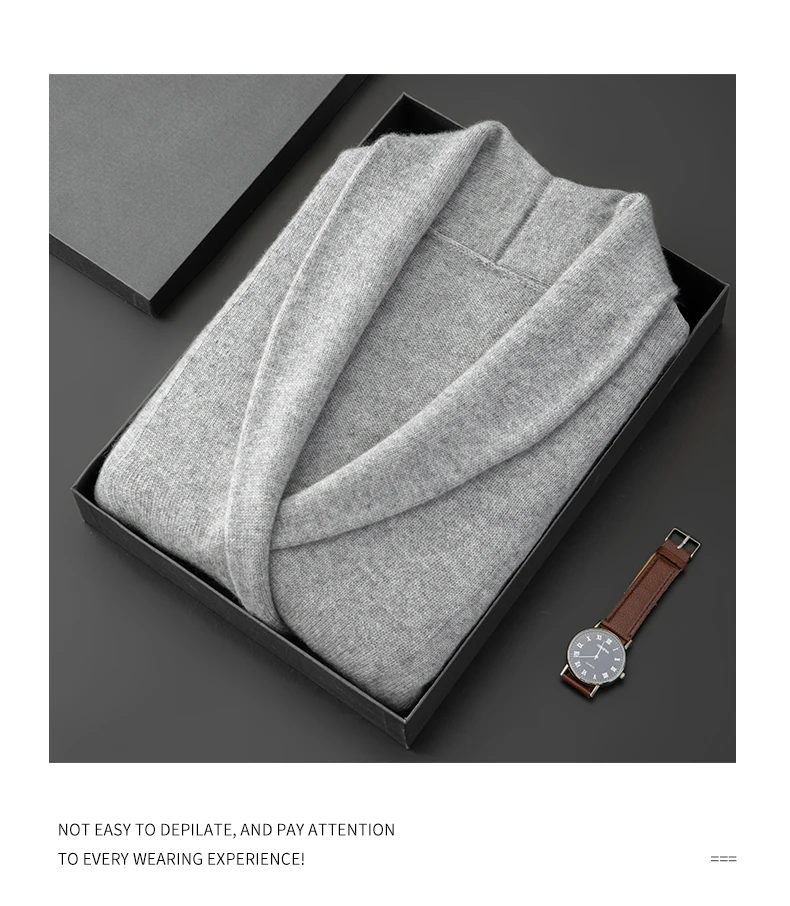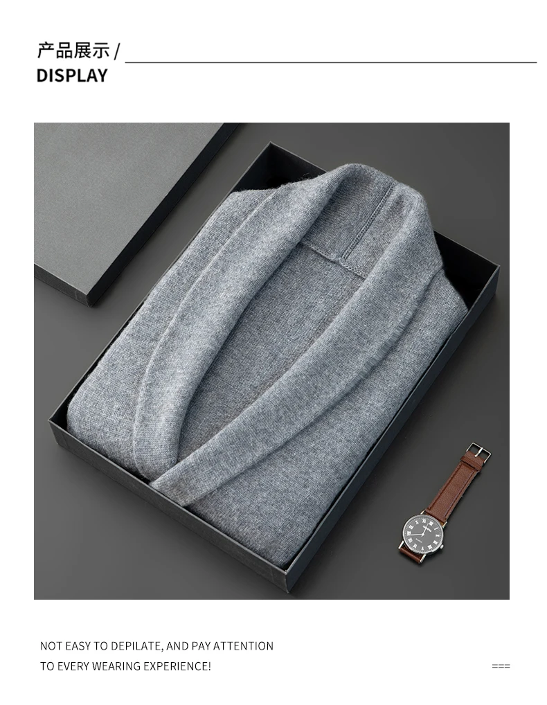 100% Class A Goat Cashmere Coat Men’s Blue Fruit Neck Double breasted Knitted Cardigan Autumn Winter Warm Long Sleeve V-Neck Top