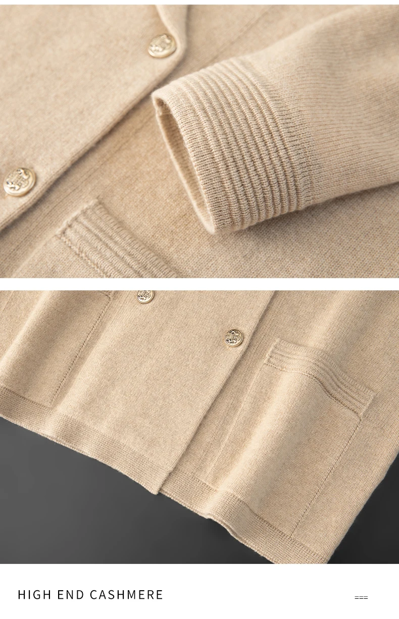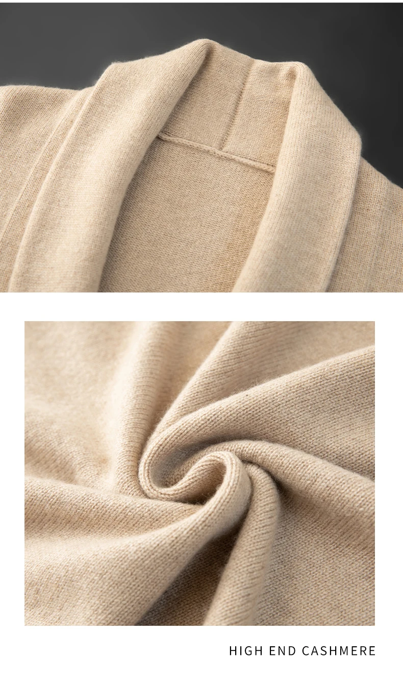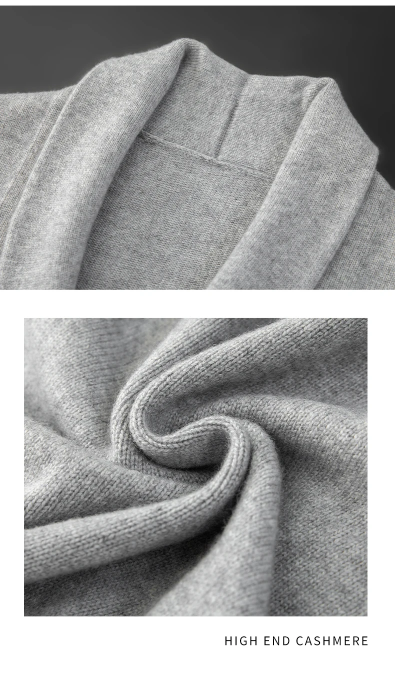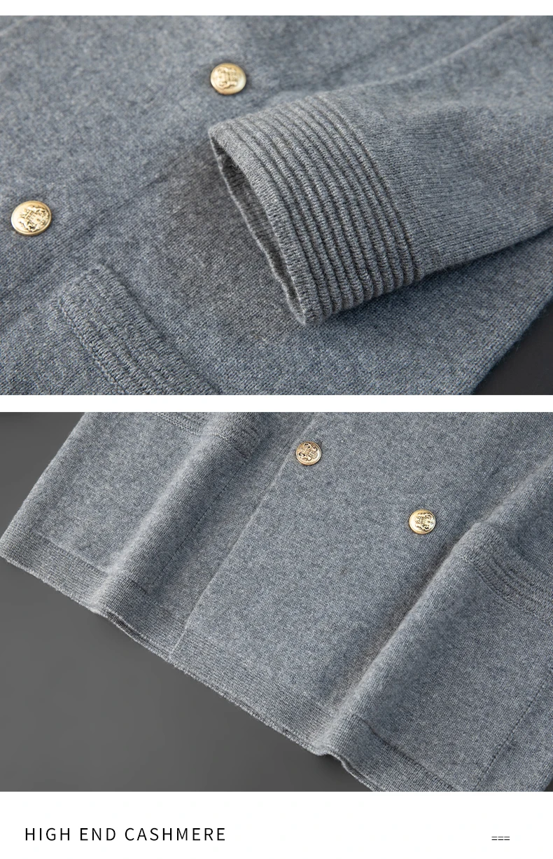 100% Class A Goat Cashmere Coat Men’s Blue Fruit Neck Double breasted Knitted Cardigan Autumn Winter Warm Long Sleeve V-Neck Top