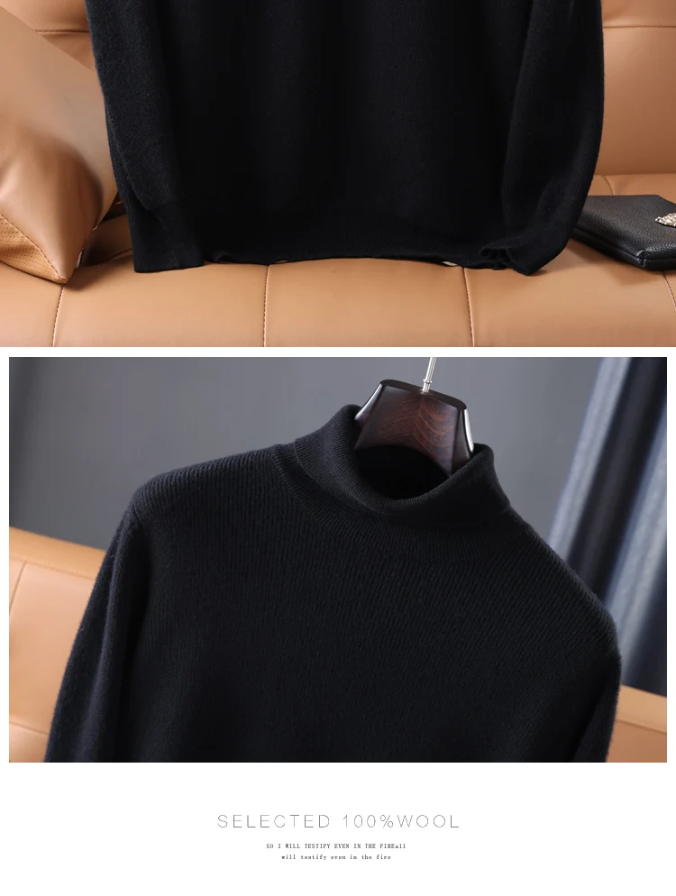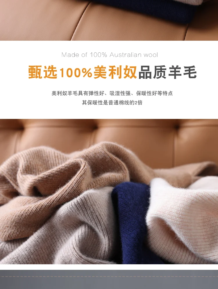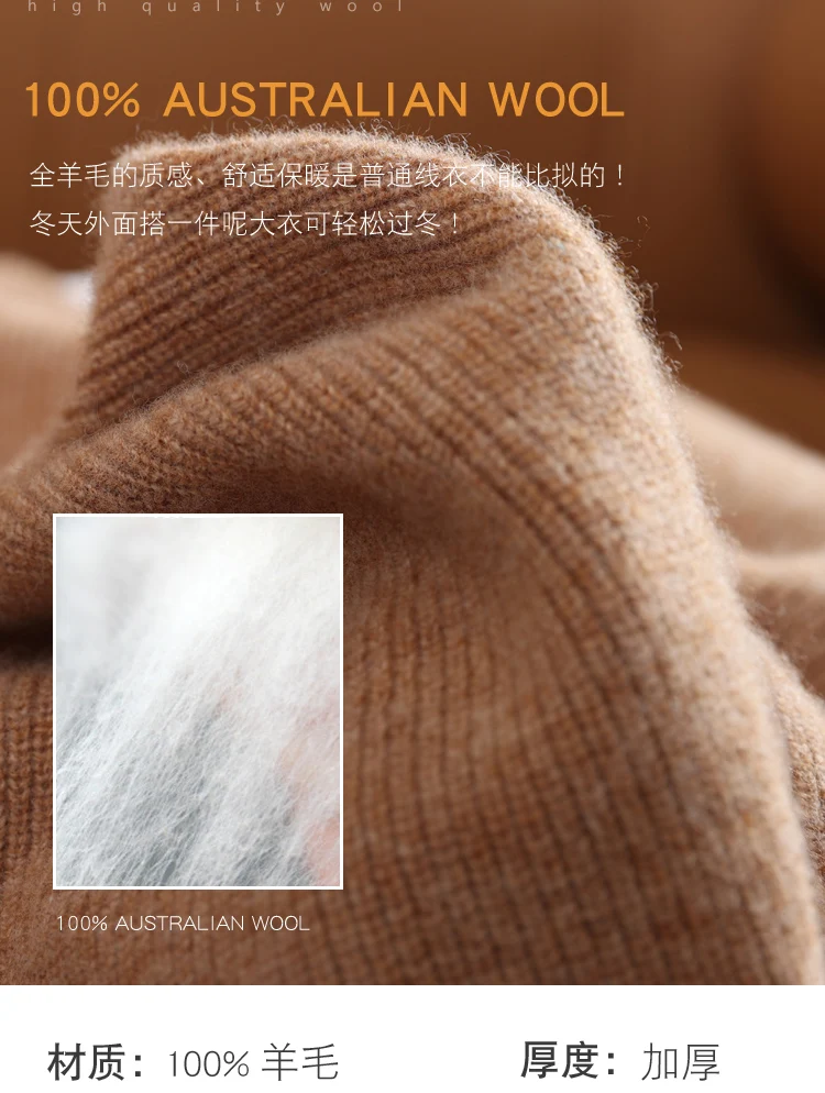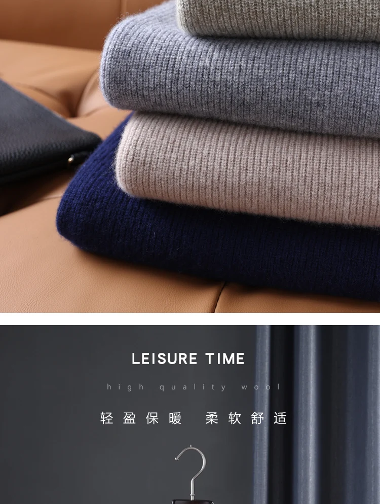 100% Pure Wool Knitted Pullovers Man Winter Thicker Warm Soft Sweaters Male Woolen Clothes 5Colors Jumpers