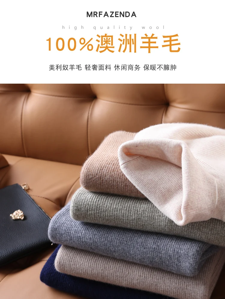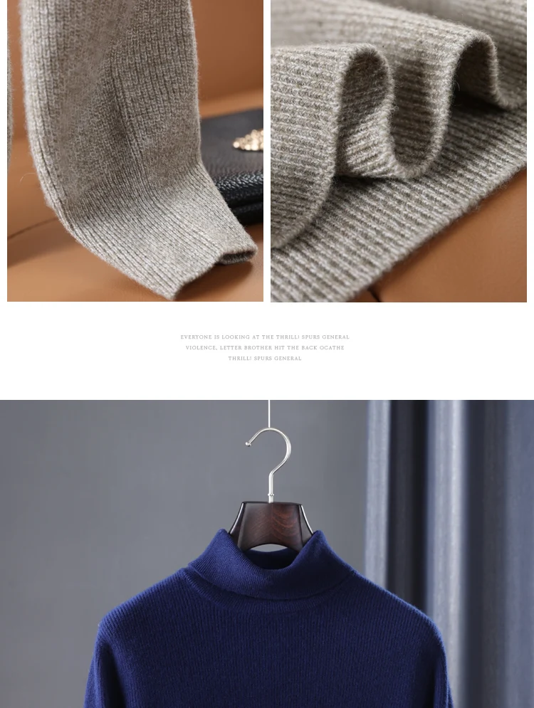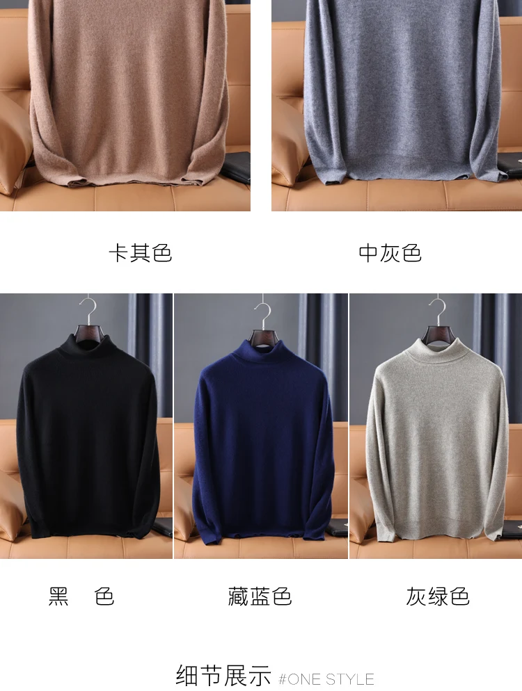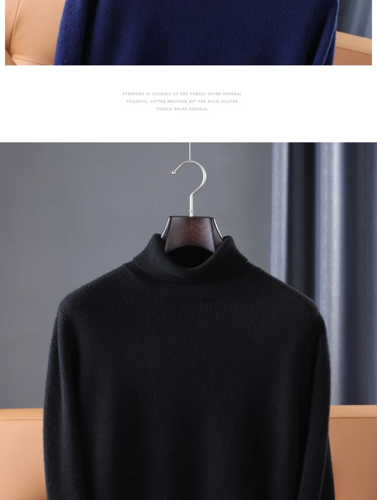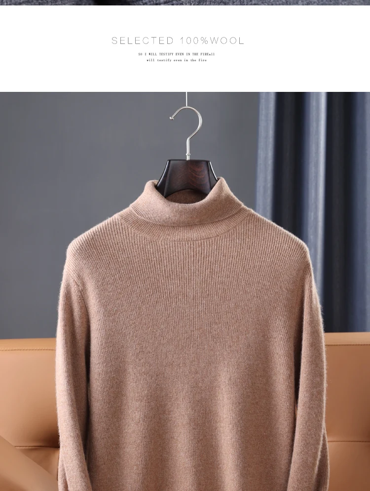 100% Pure Wool Knitted Pullovers Man Winter Thicker Warm Soft Sweaters Male Woolen Clothes 5Colors Jumpers