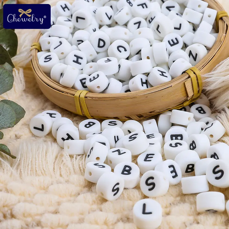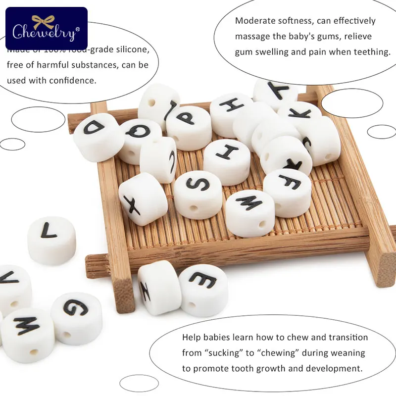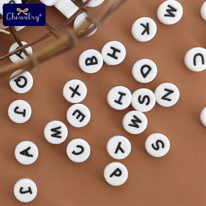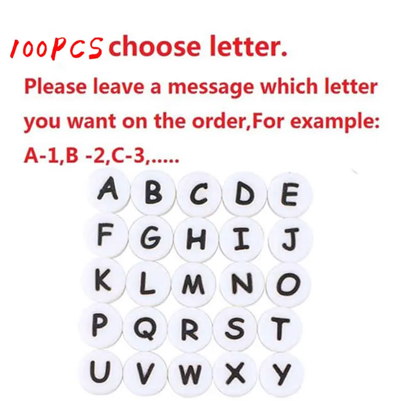 100pcs Letter Silicone Beads English Alphabe Beads Food Grade Silicone Chewing Beads DIY For Baby Teething Toys Pacifier Pendant