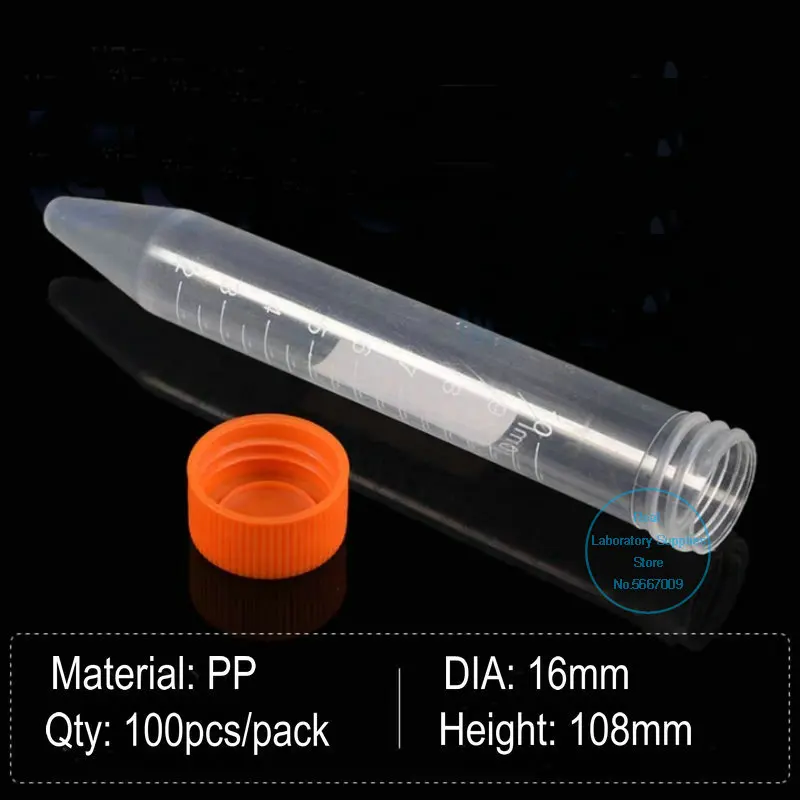 100pcs/lot 10ml Clear Plastic centrifuge tube PP Microcentrifuge Sharp-bottomed/Cone with screw cap Plastic Test Sample Vials
