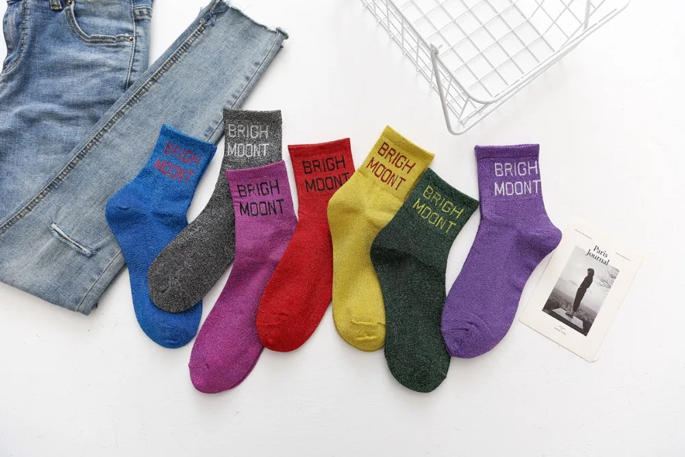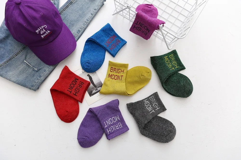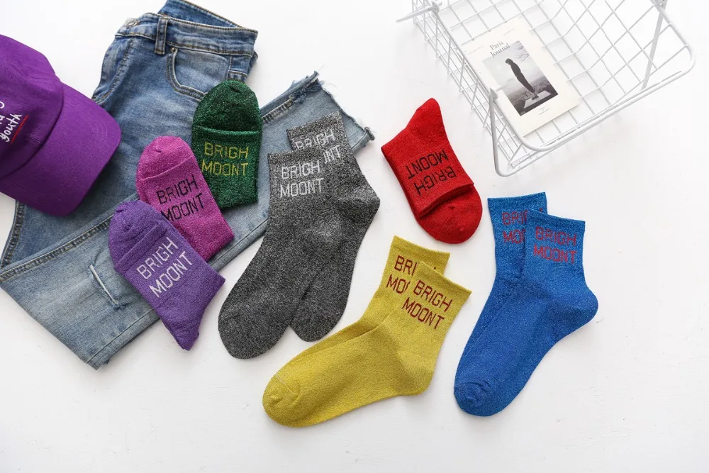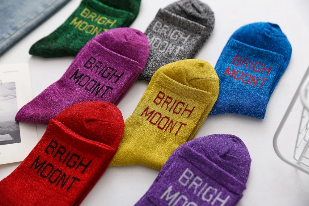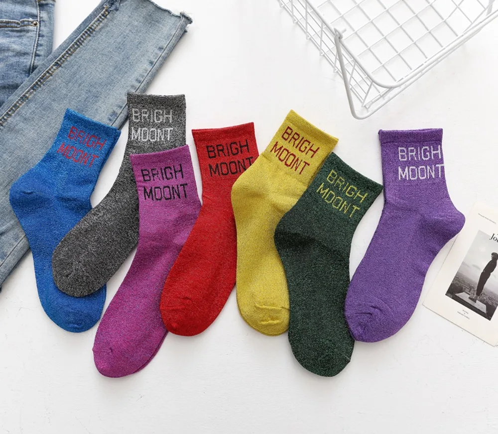 10Pairs/Lot Women Cotton Spring Moon Winter Wholesale Letter Shine Japanese Korean Crew Casual Striped Socks