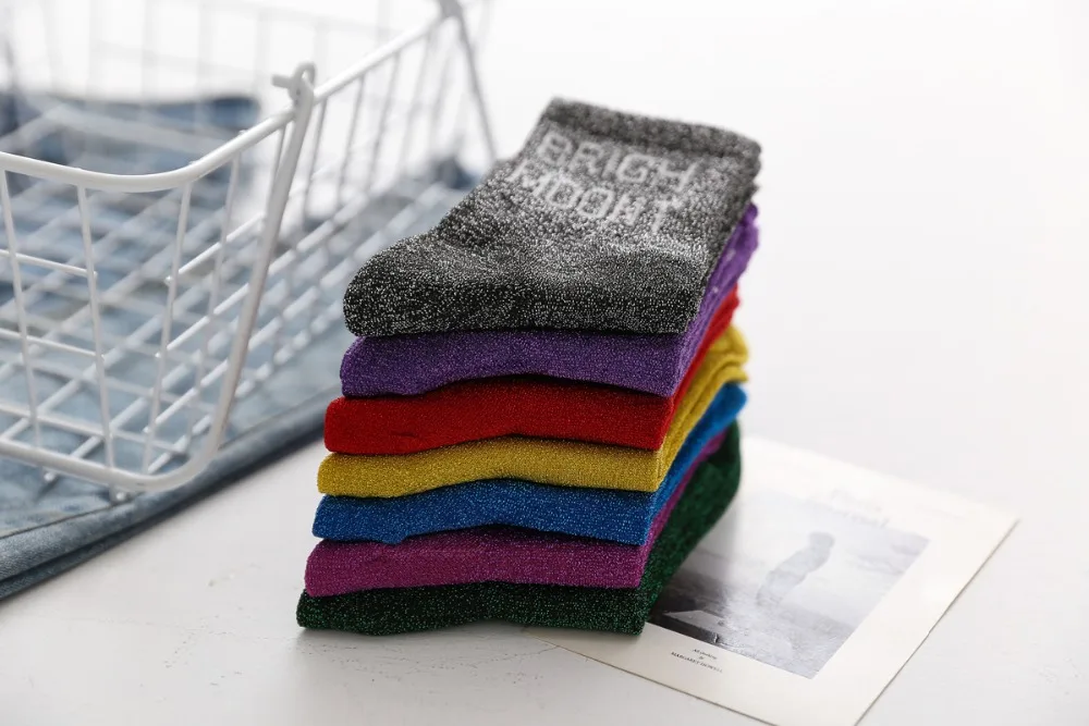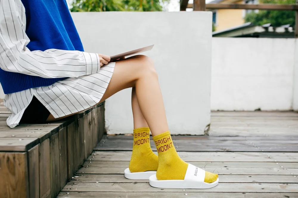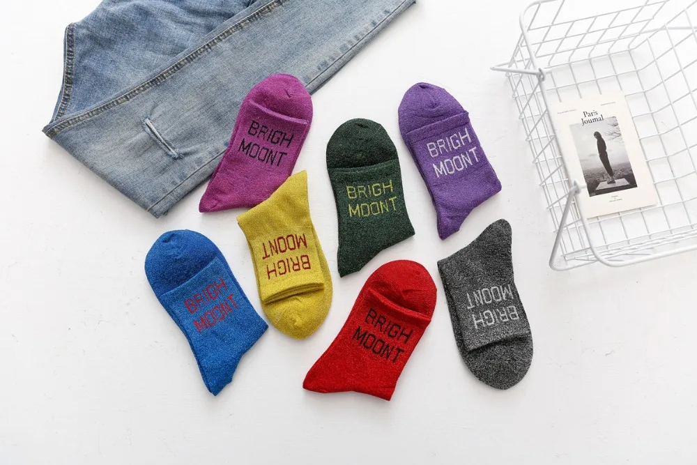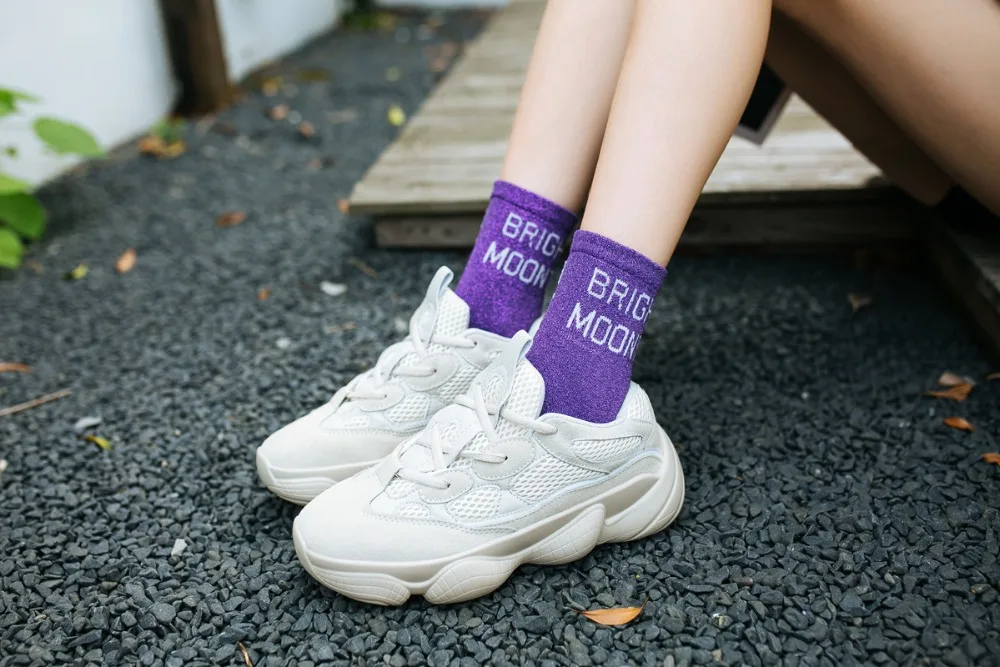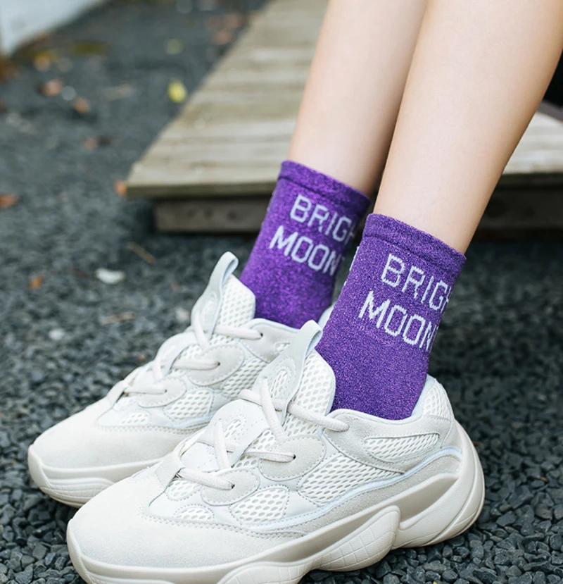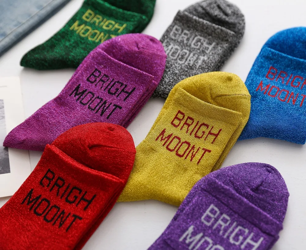 10Pairs/Lot Women Cotton Spring Moon Winter Wholesale Letter Shine Japanese Korean Crew Casual Striped Socks
