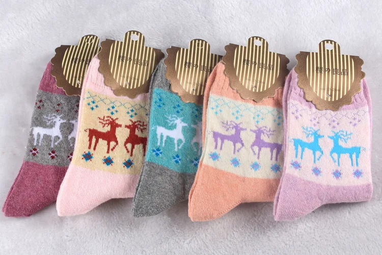 10pairs/Lot Women socks Lady Winter Warm Socks Christmas Deer Bow Wool Socks thicken Socks