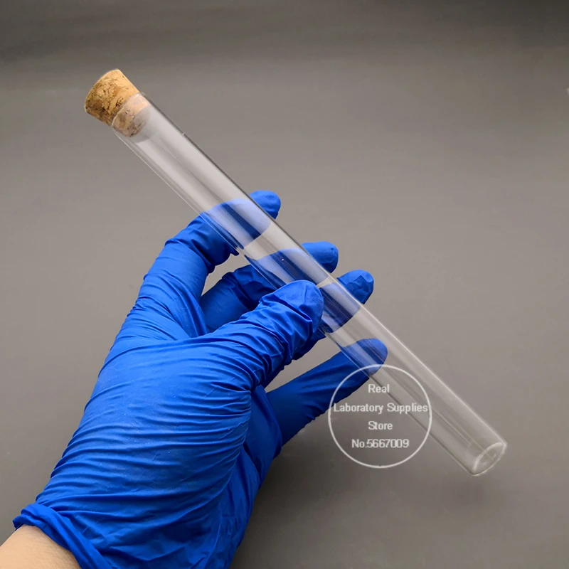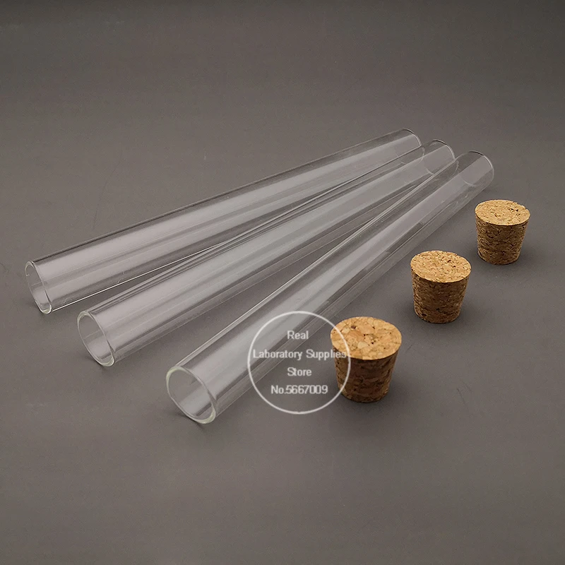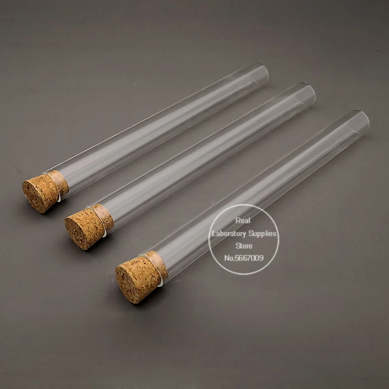 10pcs 20x200mm flat bottom Glass test tube with cork stopper,Lab Thickened glass reagent reaction vessel