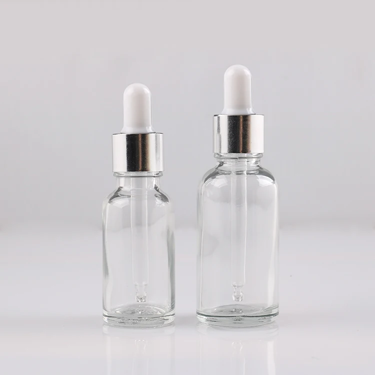 10pcs/lot 5ml to 50ml lab clear round glass Refined oil bottle with glass droppers silver circle for school experiment