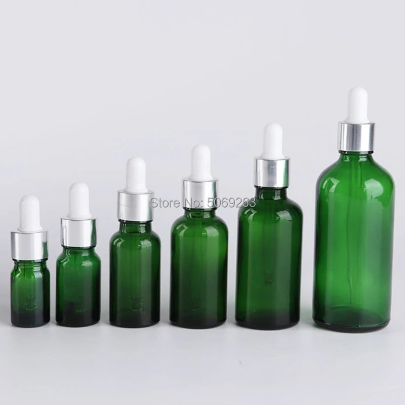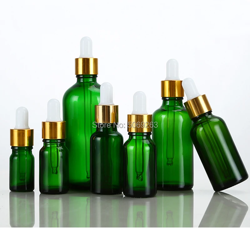 10Pcs/Lot Green Glass Refined Lab Oil Bottle with Glass Droppers Golden/Silver Circle for School Experiment