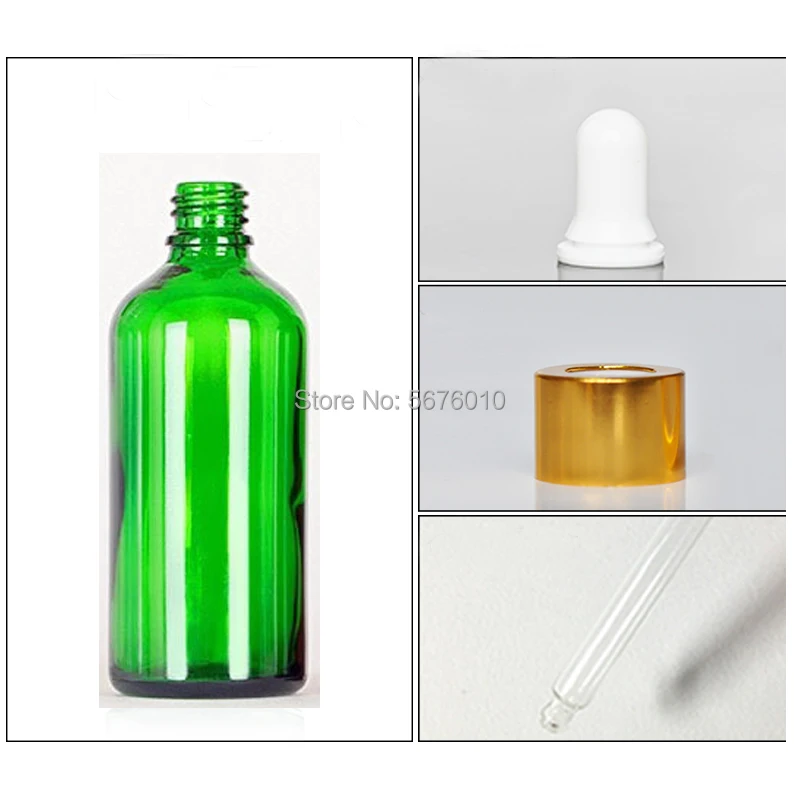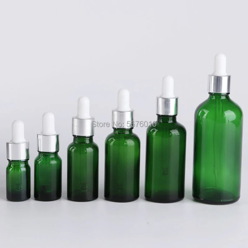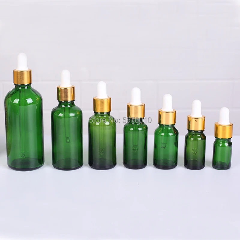 10Pcs/Lot Green Round Glass Refined Lab Oil Bottle with Glass Droppers Golden/Silver Circle for School Experiment