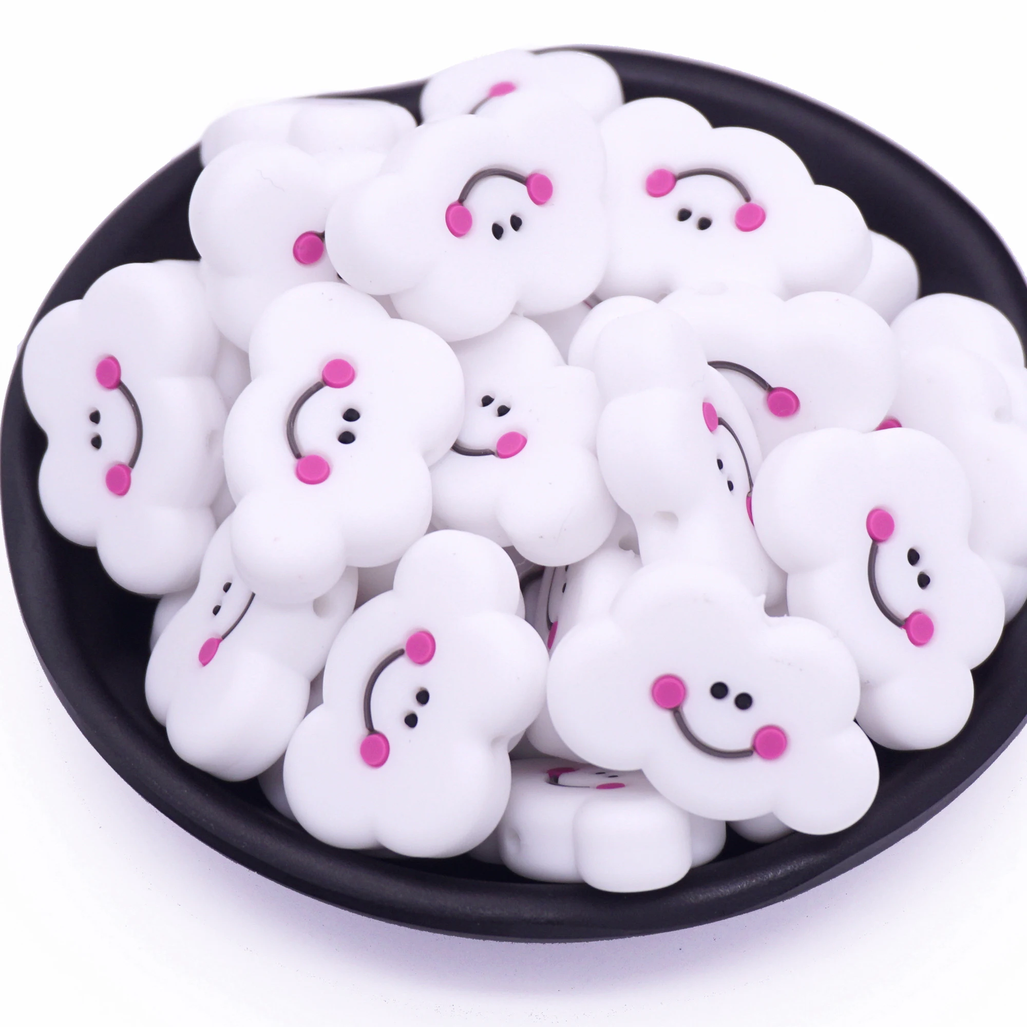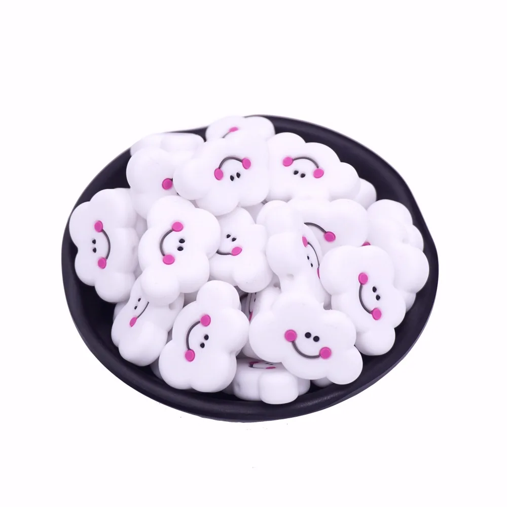 10pcs Silicone Beads 30mm Teething Beads Could Smiley Face DIY Pacifier Clip Necklace Food Grade Safe Soft Silicone Baby Teether