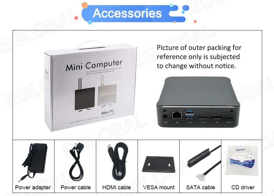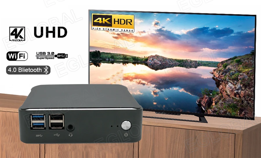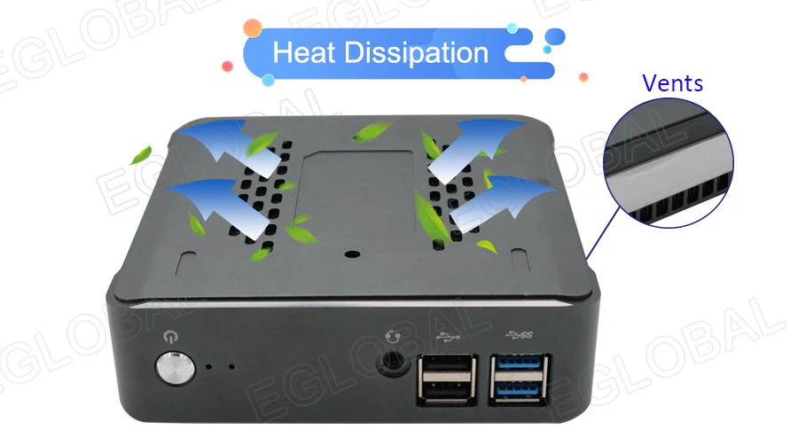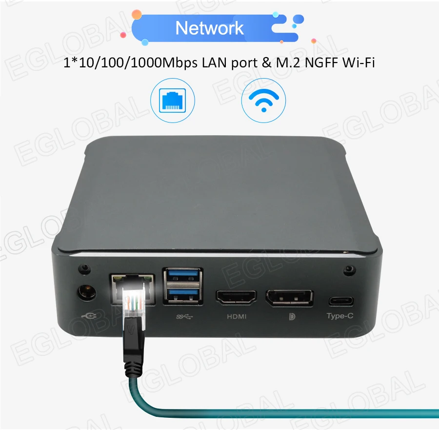 HDMI, DP, RJ45 Giga LAN, 4*USB3.0, 2*USB2.0,