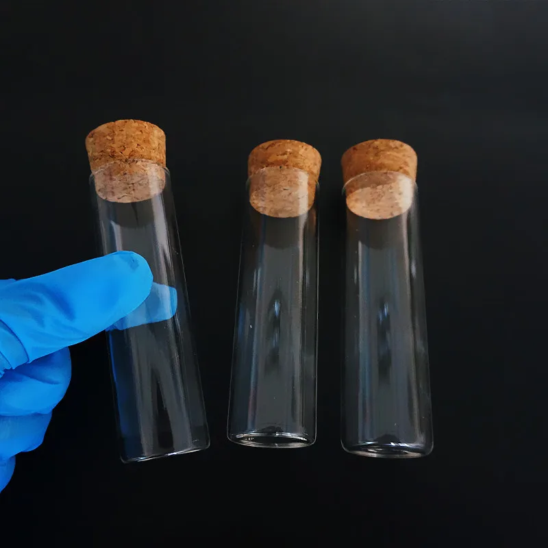 12pcs/lot 30x100mm 50ml Flat Bottom Glass Test Tube With Cork Stoppers For Kinds Of Laboratory Glassware