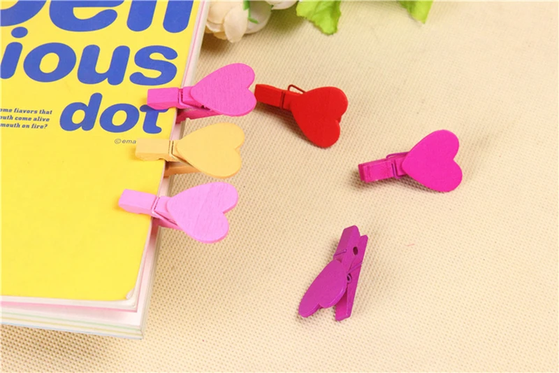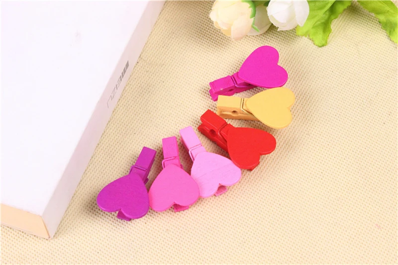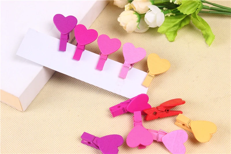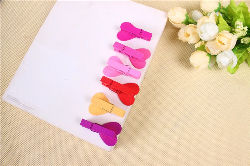 Name:12Pcs Wood Love Clips Diy Color Binder Clip Mini Note Folder