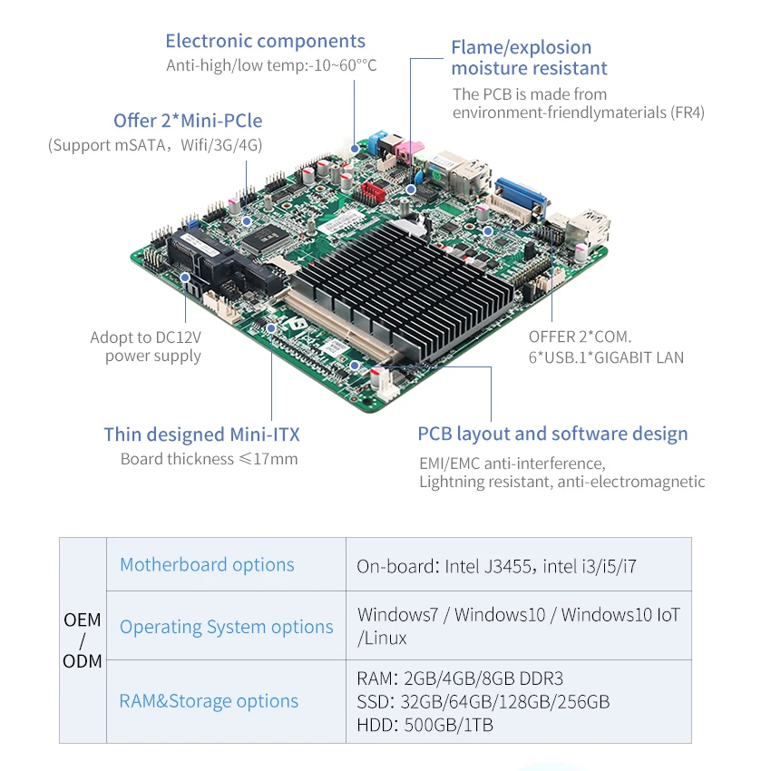 All these motherboards are brand new products, including chips and other accessories with professional industrial grade motherboard, low-power U series chipset. Energy saving, low consumption, the performance of components is stable, suitable for various complex and harsh environments