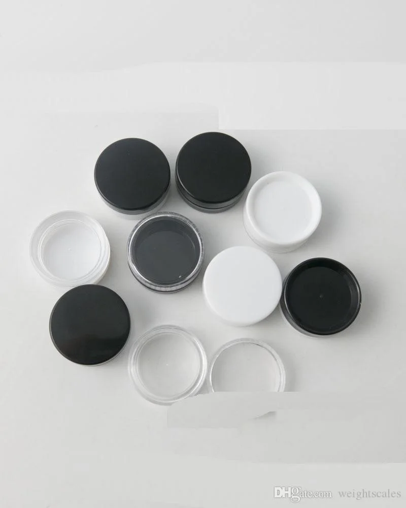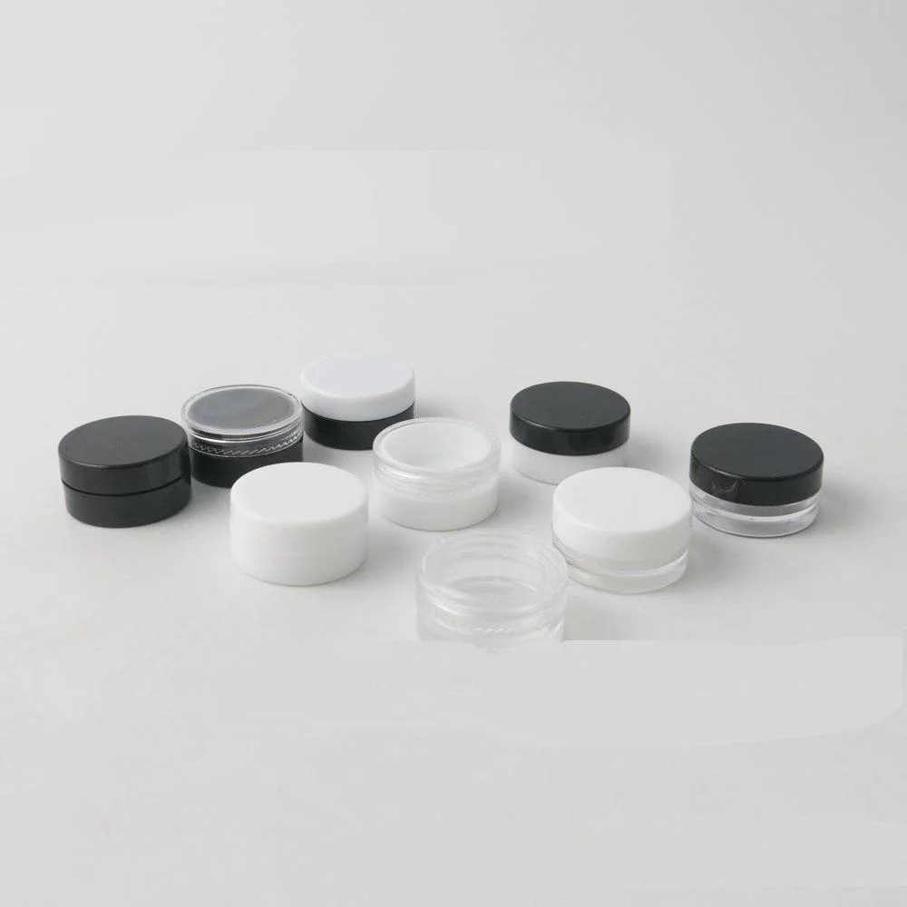 1ML 1G 1 Gram Cosmetic Sample Empty Jar Plastic Round Pot Black Screw Cap Lid Small Tiny 1g Bottle for Make Up Eye Shadow Nails