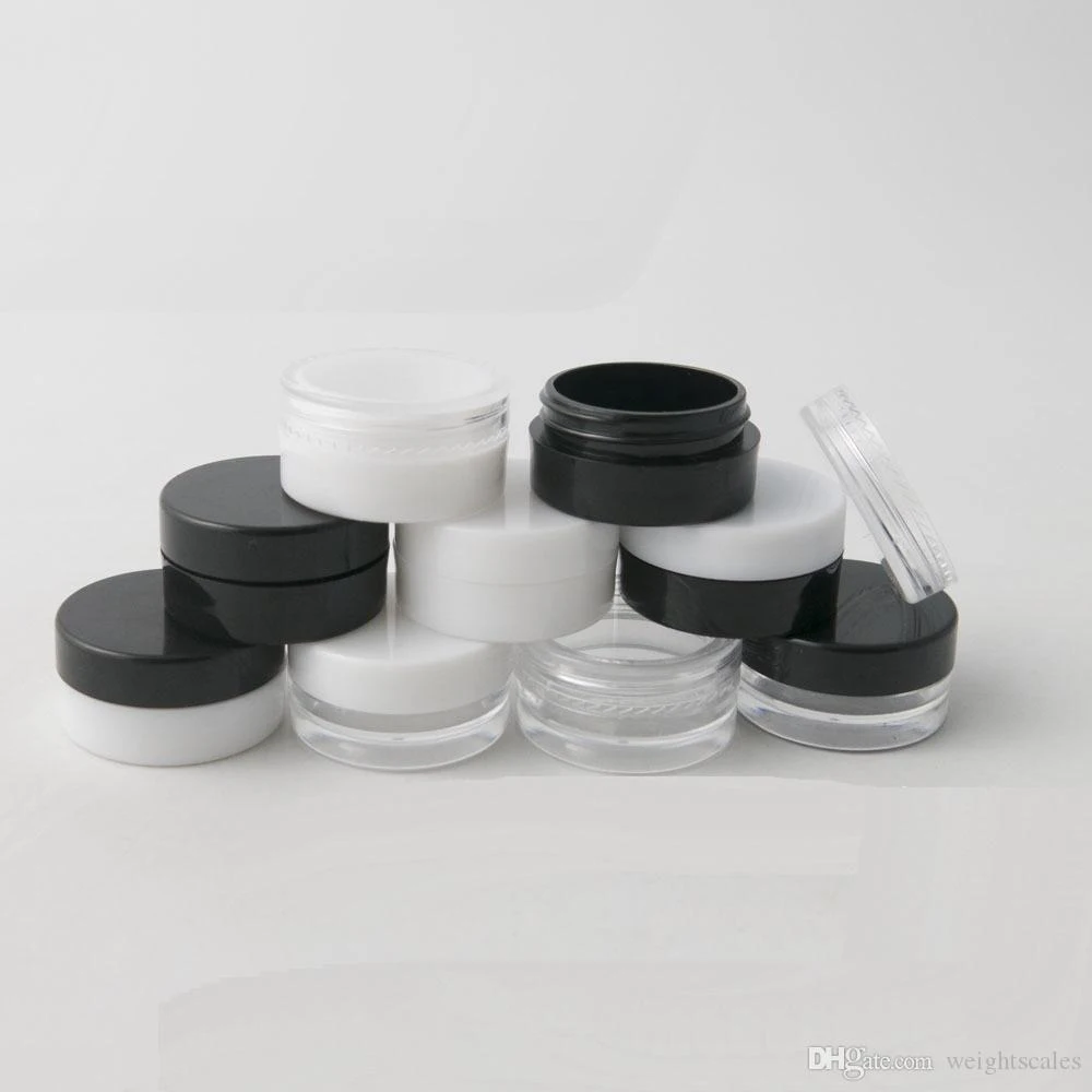 1ML 1G 1 Gram Cosmetic Sample Empty Jar Plastic Round Pot Black Screw Cap Lid Small Tiny 1g Bottle for Make Up Eye Shadow Nails