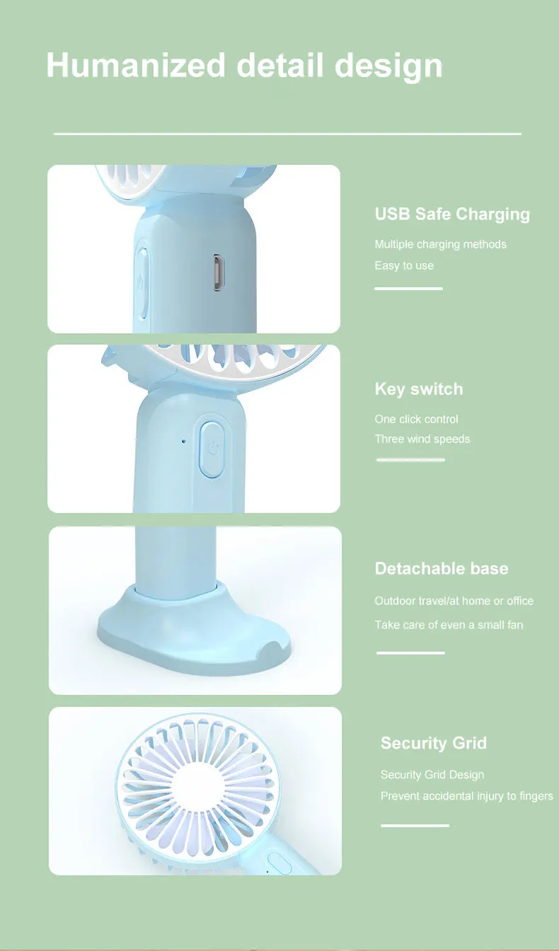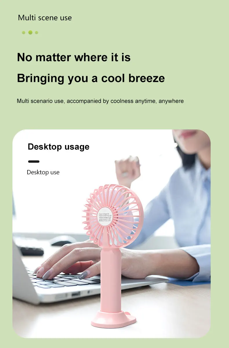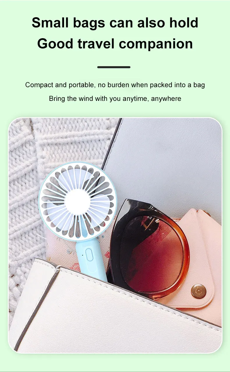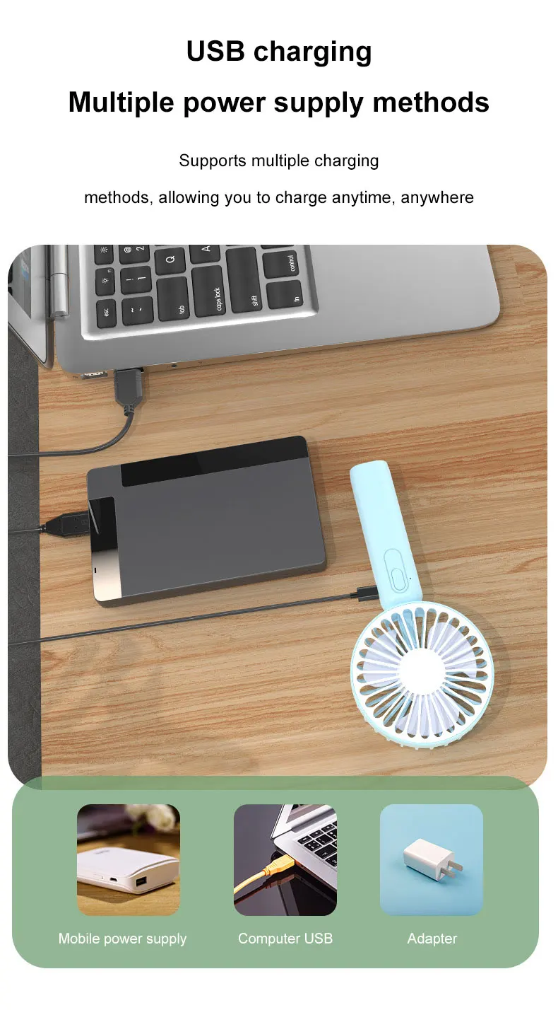 1pc New Portable Fan Office Desktop Multifunctional Folding Headed Small Electric Fan USB Mini Portable High Wind Pocket Fan