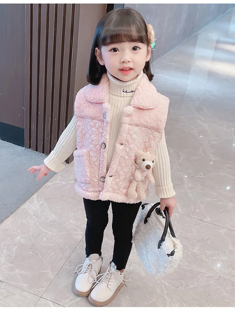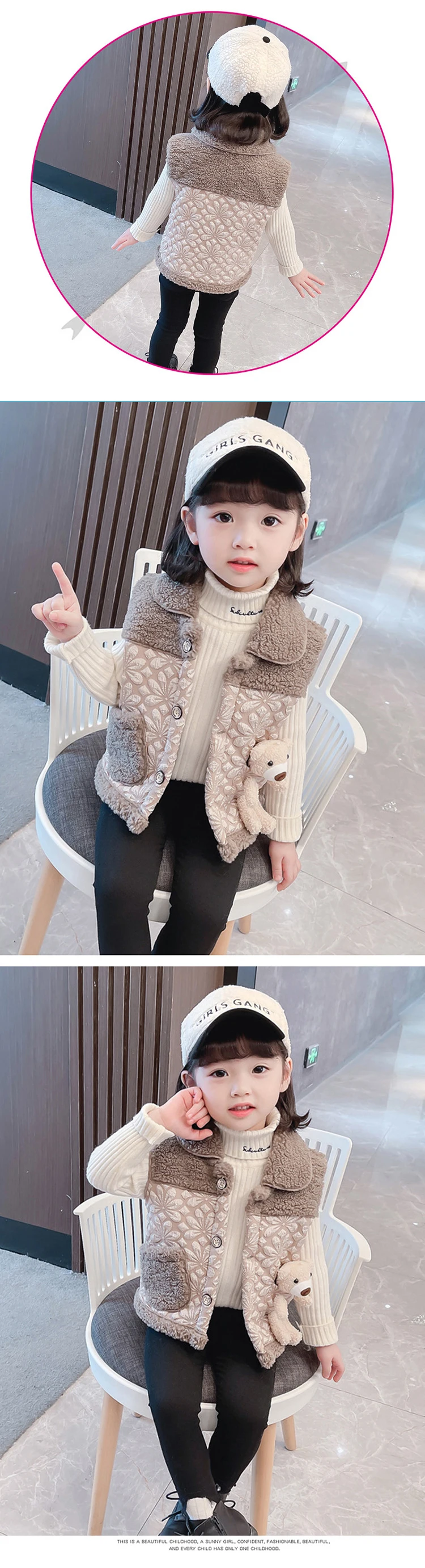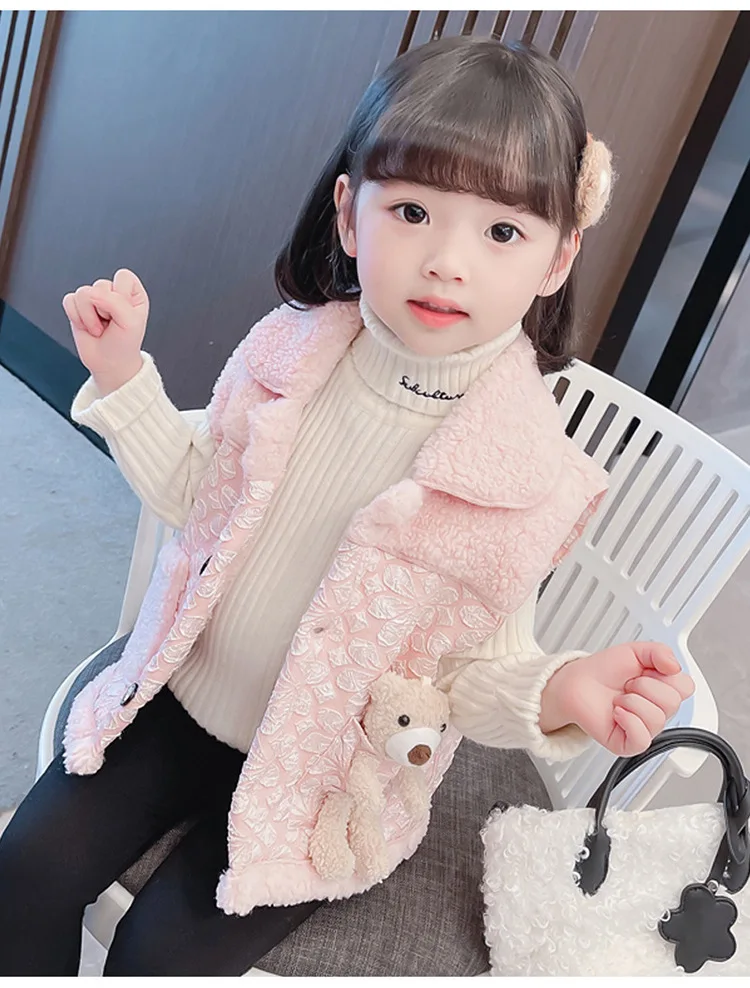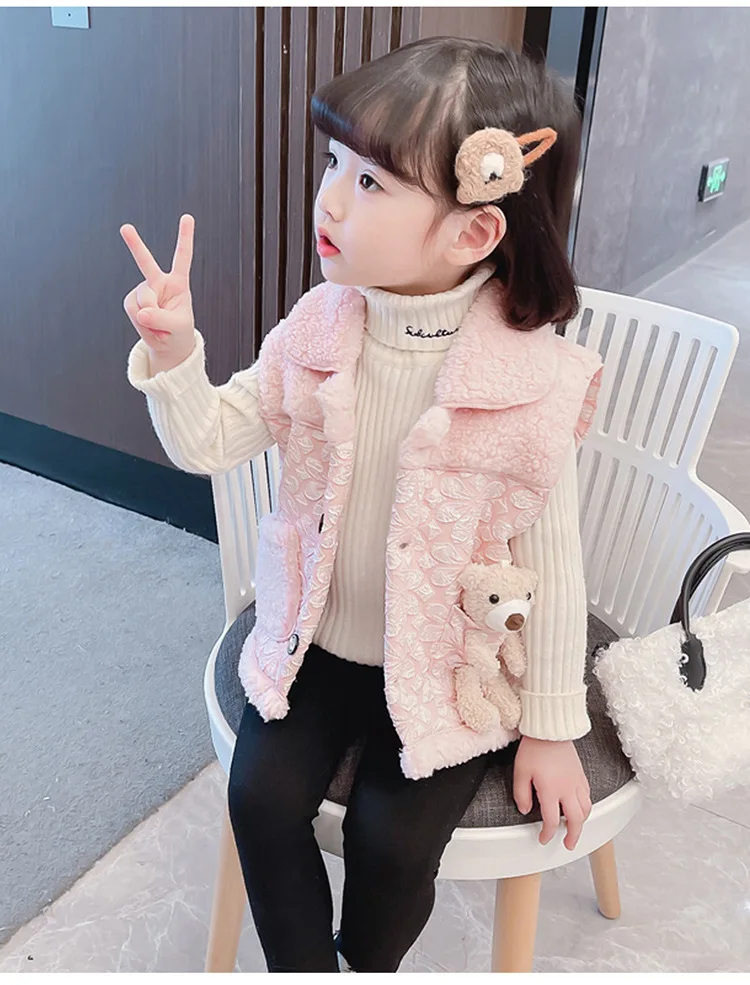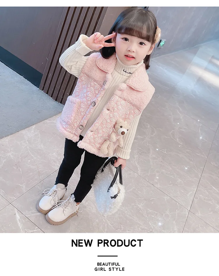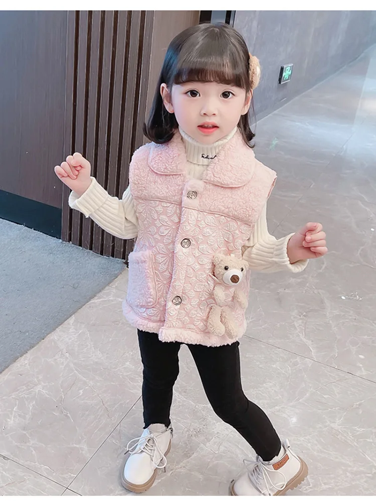 2 4 6 Years Baby Girls Vest Outerwear Spring Autumn Warm Fleece Children Waistcoat With Bear Toddler Girl Clothes Birthday Gifts