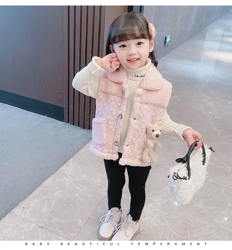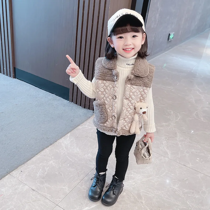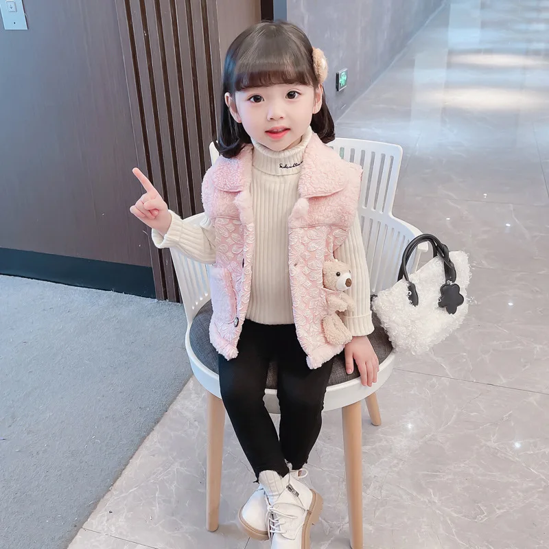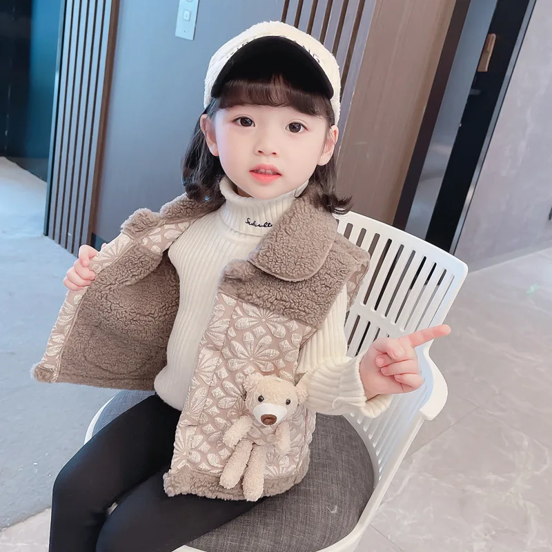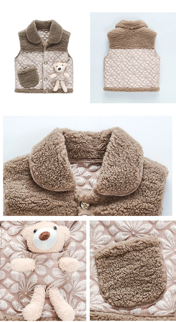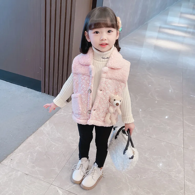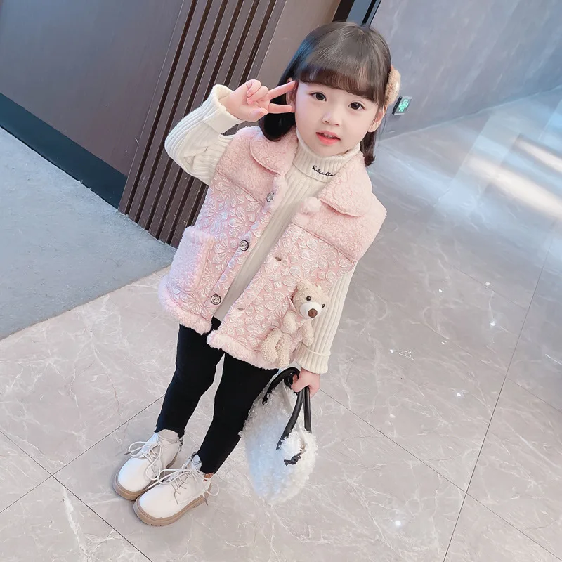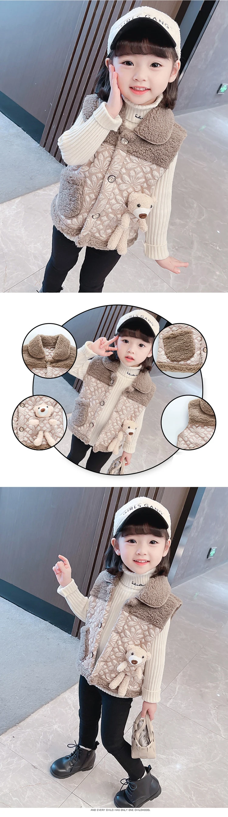 2 4 6 Years Baby Girls Vest Outerwear Spring Autumn Warm Fleece Children Waistcoat With Bear Toddler Girl Clothes Birthday Gifts