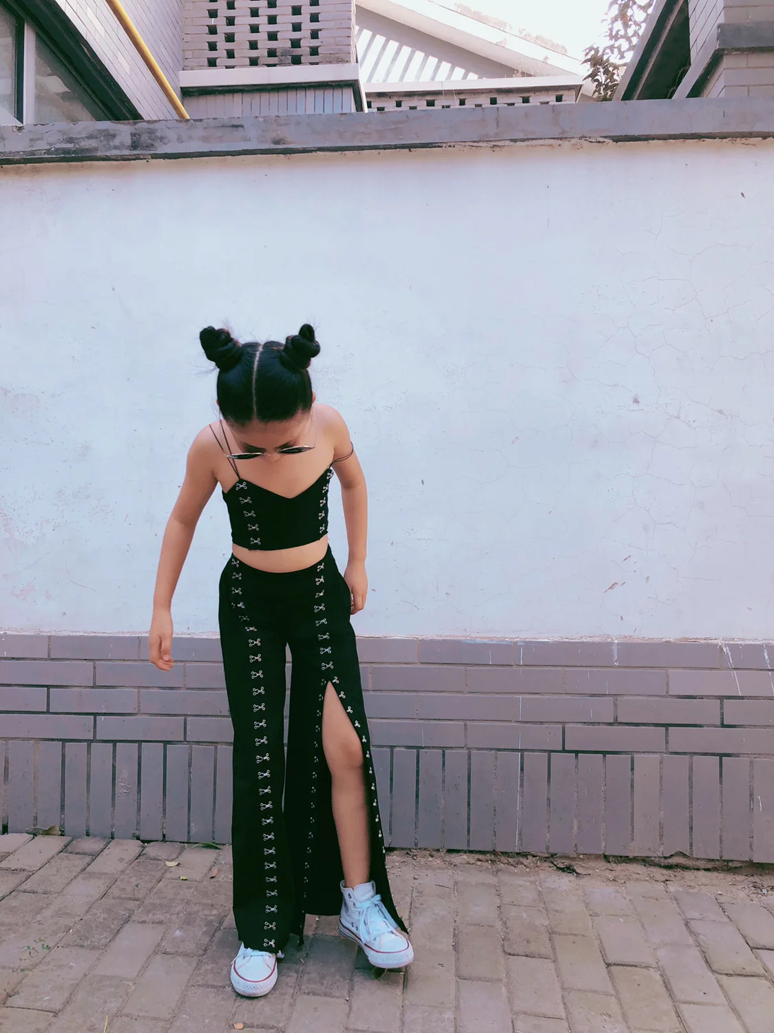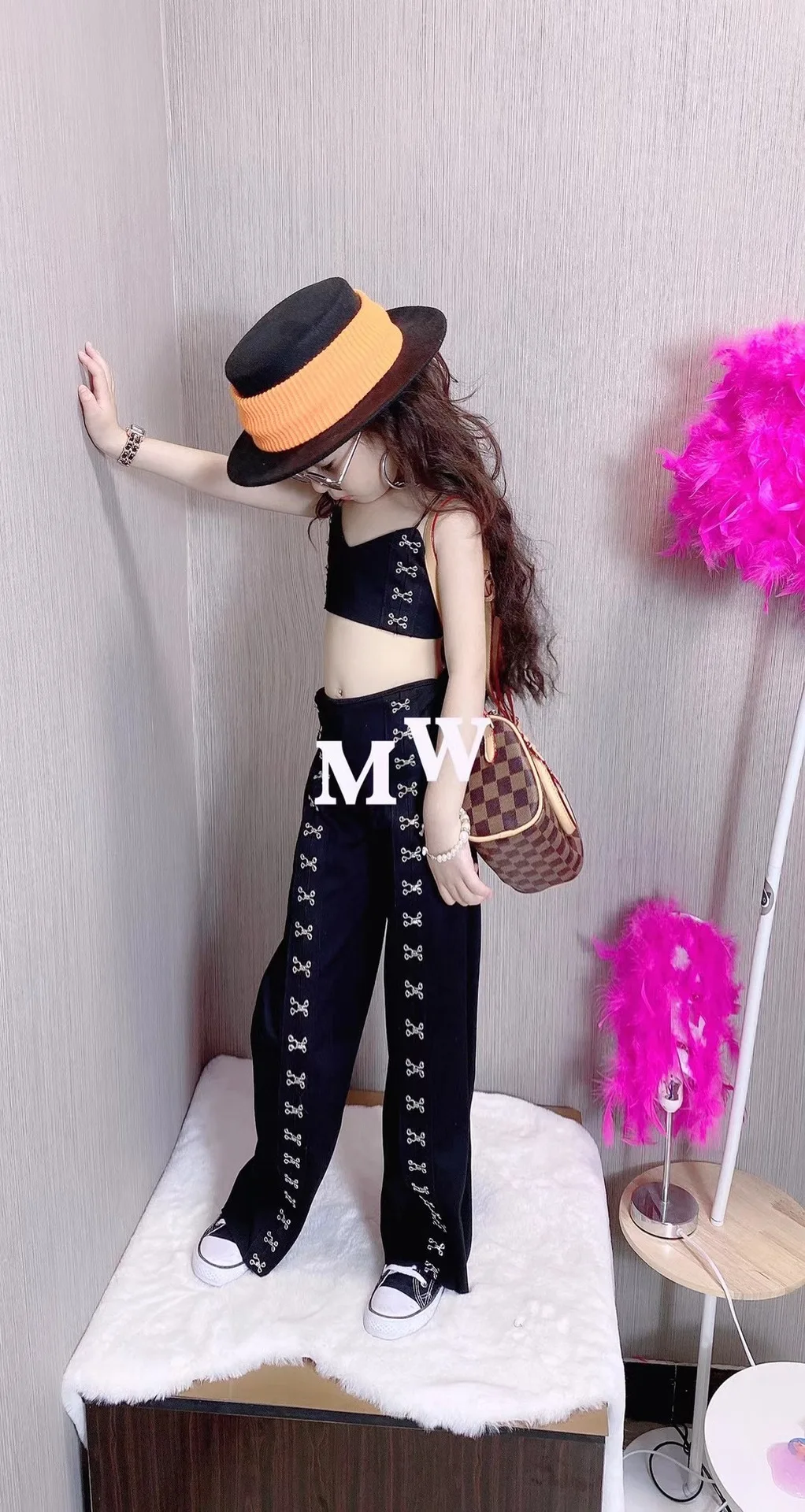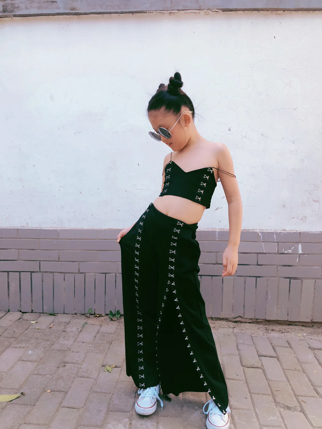 2 piece set baby black tank top and pants suit split streetwear crop top toddler girls outfits party boutique kids 1 to 10 yrs