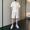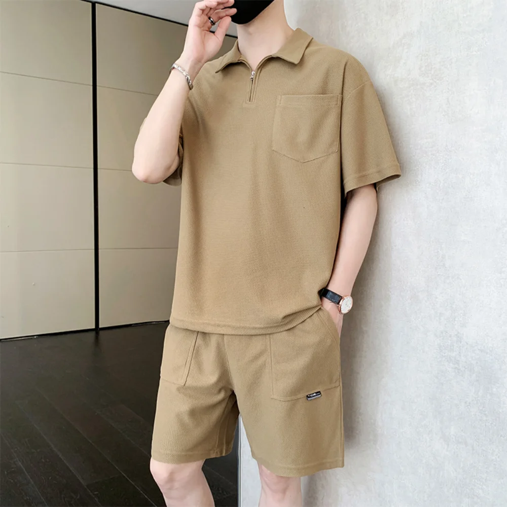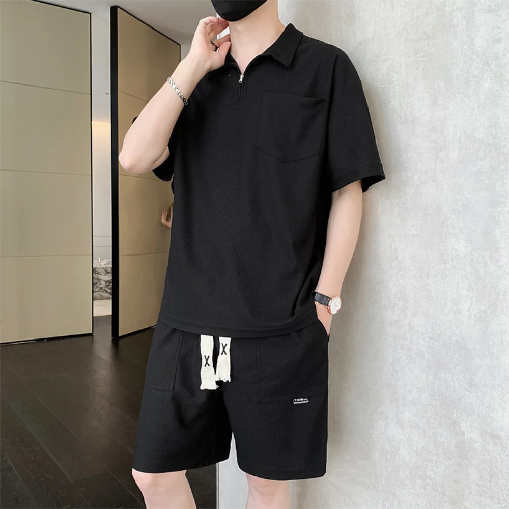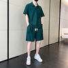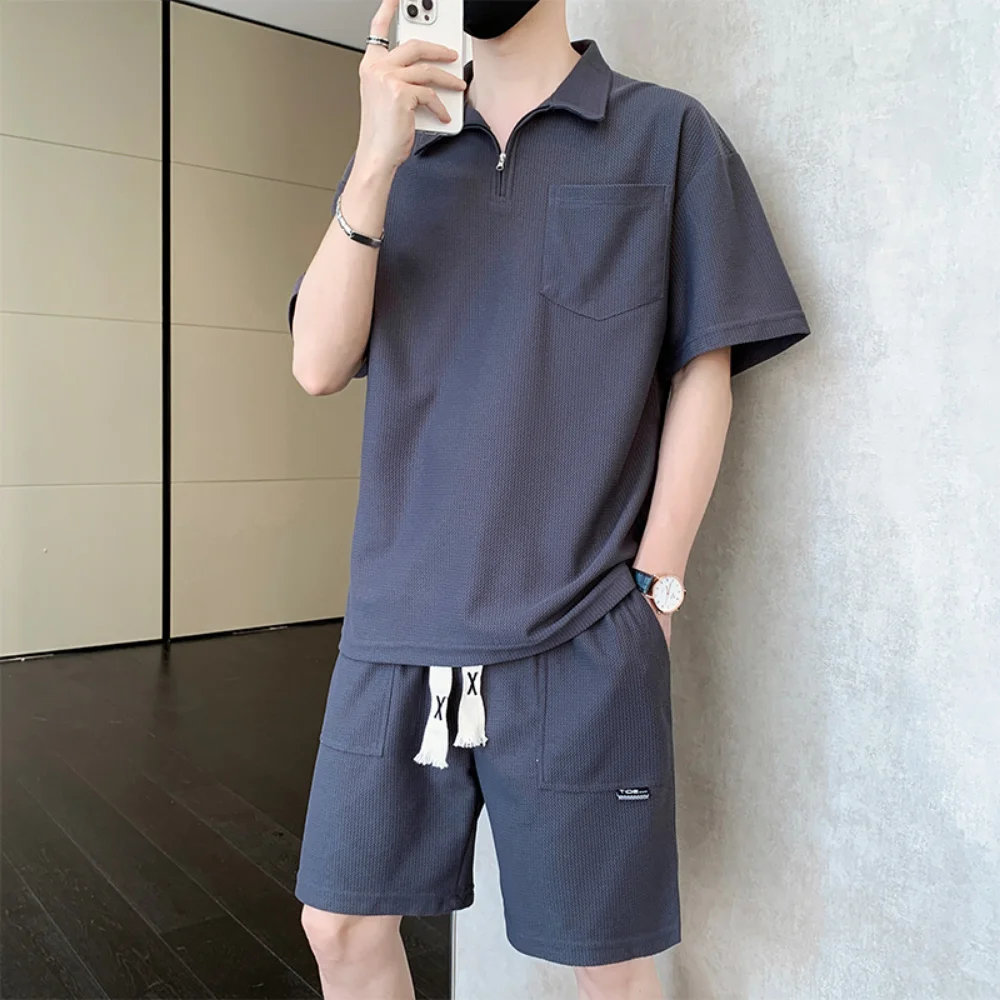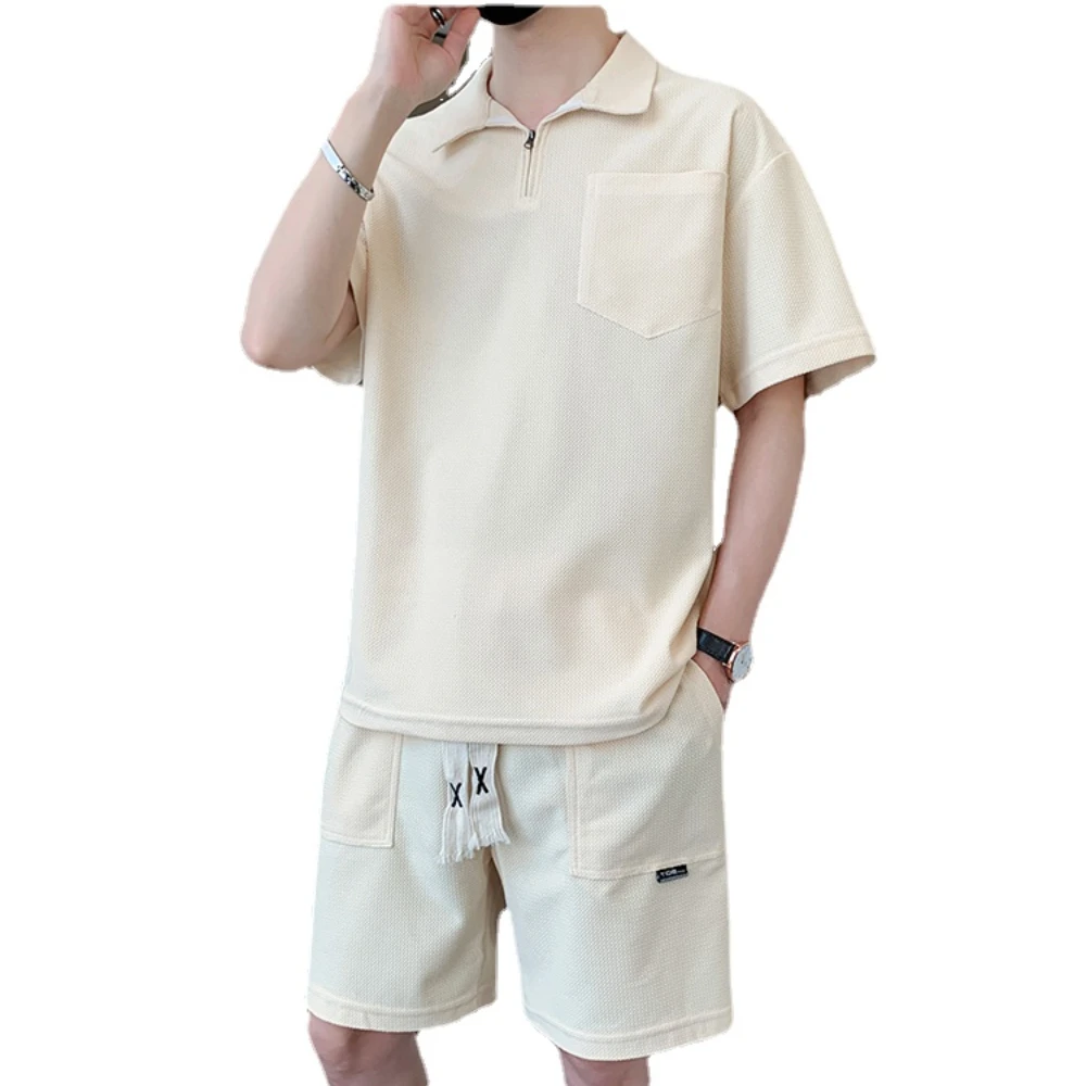 2 Piece Sets Men Fashion Clothing Solid Color Men Streetwear Outfits Summer Polo Tshirt Shorts Set Mans Tracksuit Breathe Cool