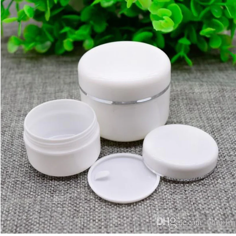 20 50 100 250ML Empty White Silver Edge Portable Refillable Plastic Cosmetic Makeup Face Cream Jar Sample Container Bottle Pot