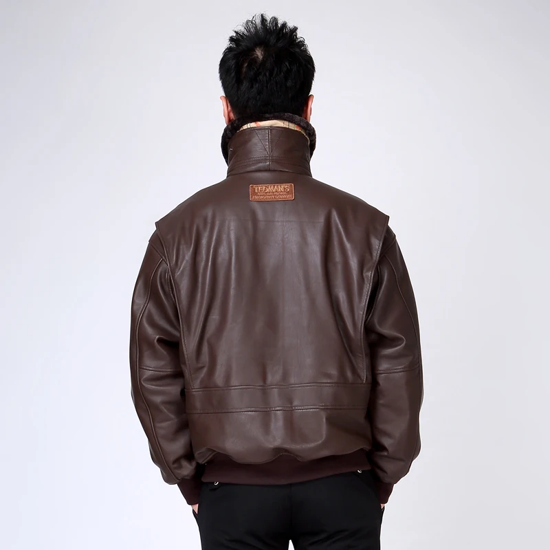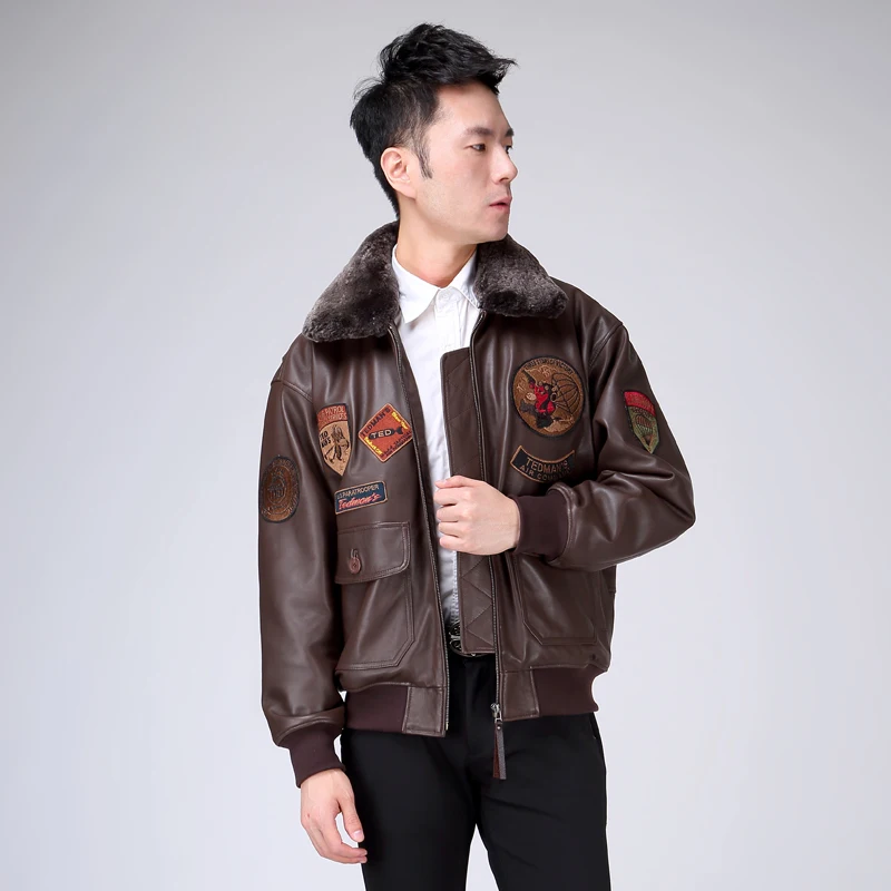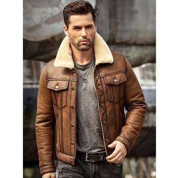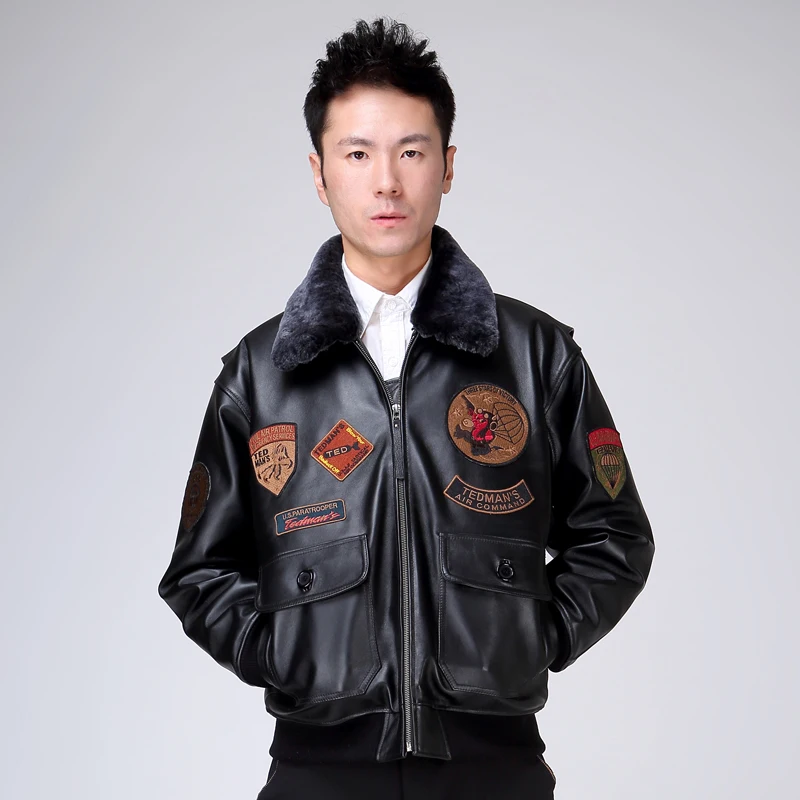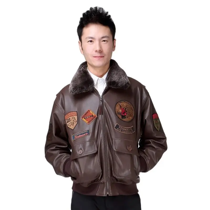 2016 New Men’s Genuine Leather Pilot Jacket Wool Collar Fat loose large size sheepskin Male Short Slim Fit Aviator Winter Coats