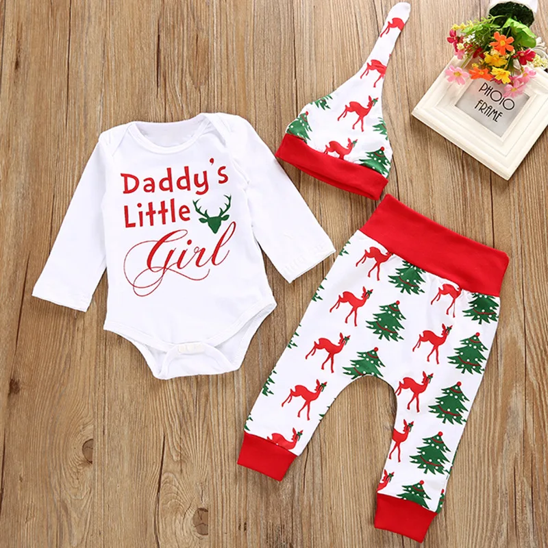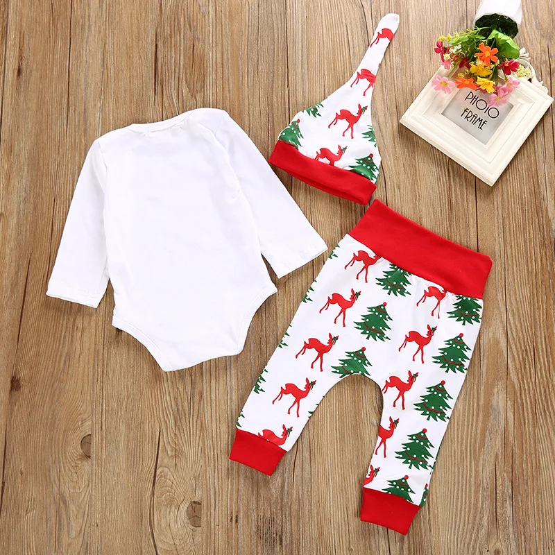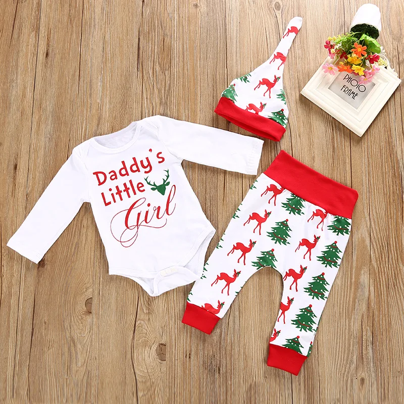 2018 Christmas Baby Clothes Suits Newborn Bodysuits Long Pant Fetal Cap Daddy’s Little X’MAS Gift Deer Tree Boy 3-Piece Jumpsuit