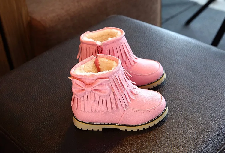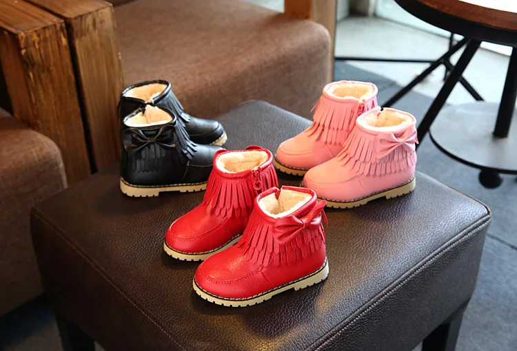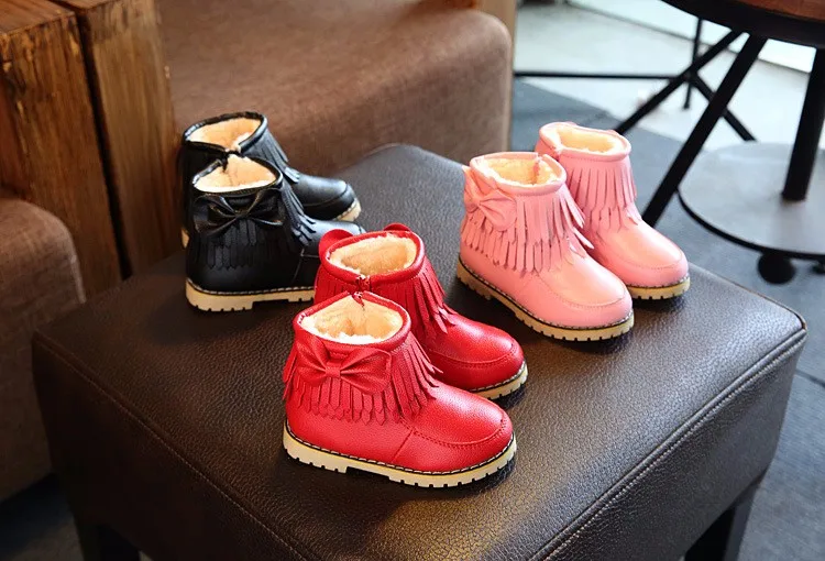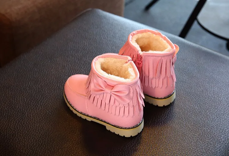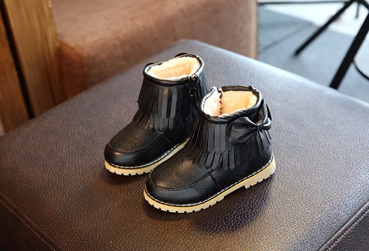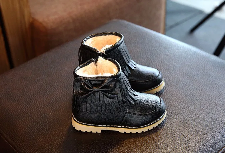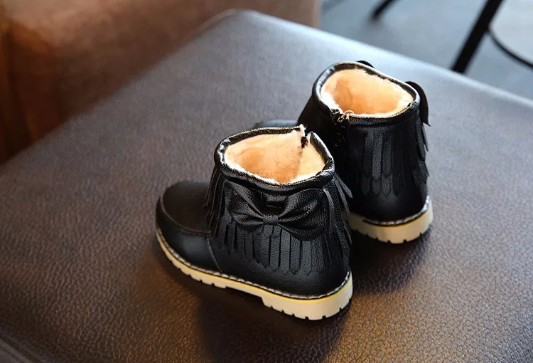 2018 New Children Shoes Girls Boots Flower Flat with Warm boots Kids Baby Toddler With Plush Ankle Leather Boots