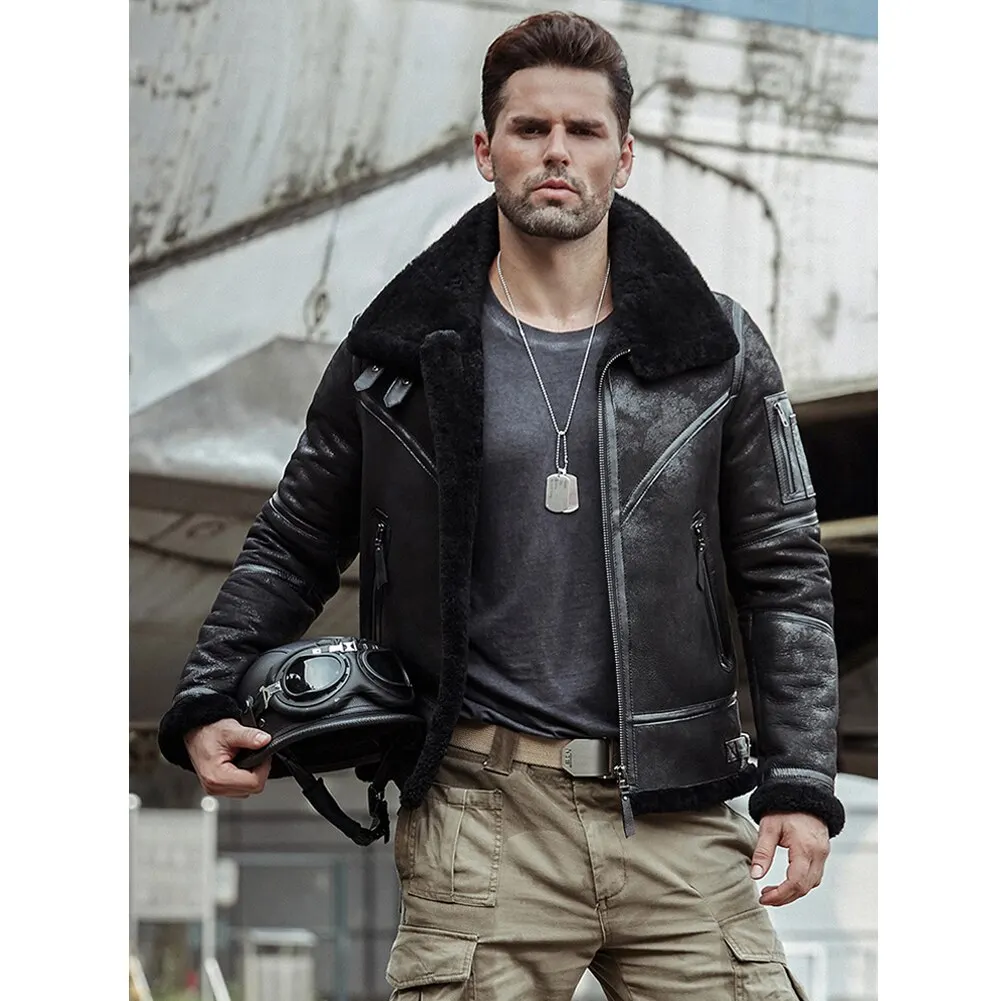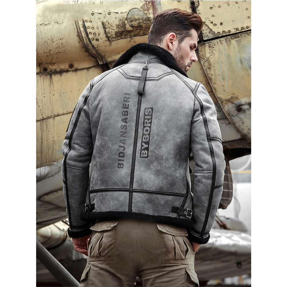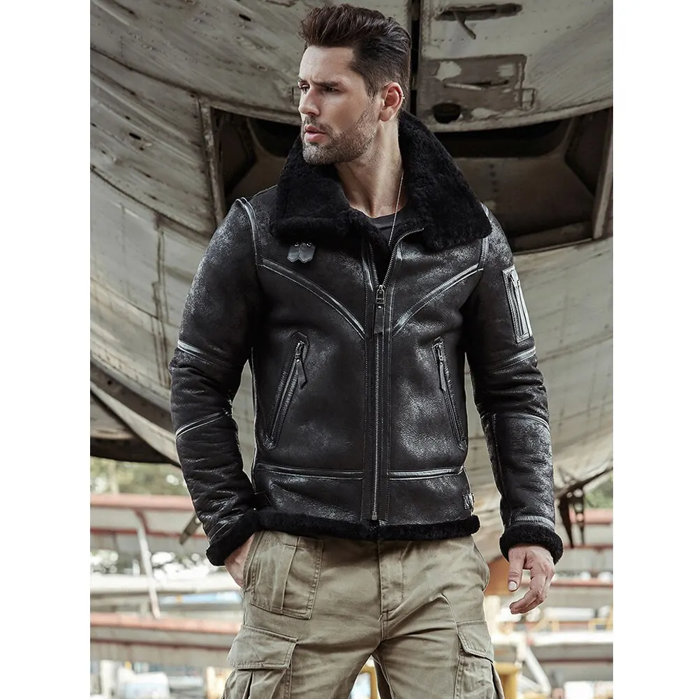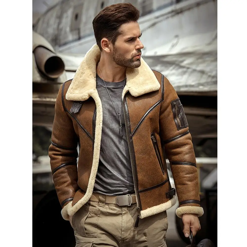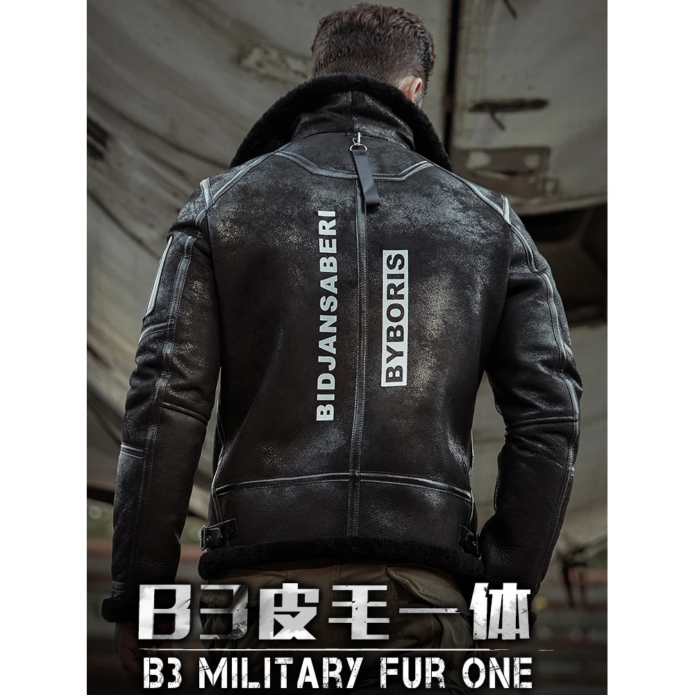 2019 New Mens Shearling Jacket B3 Flight Jacket Sheepskin Aviator Winter Coat Fur Bomber Leather Jacket