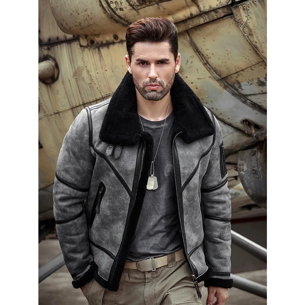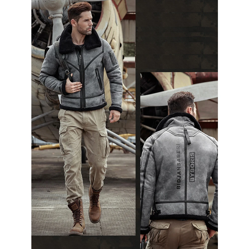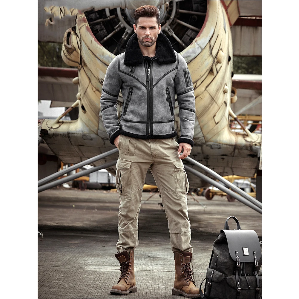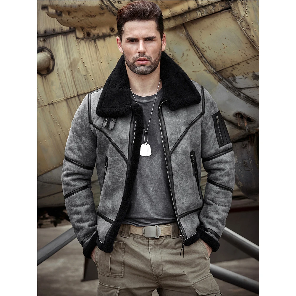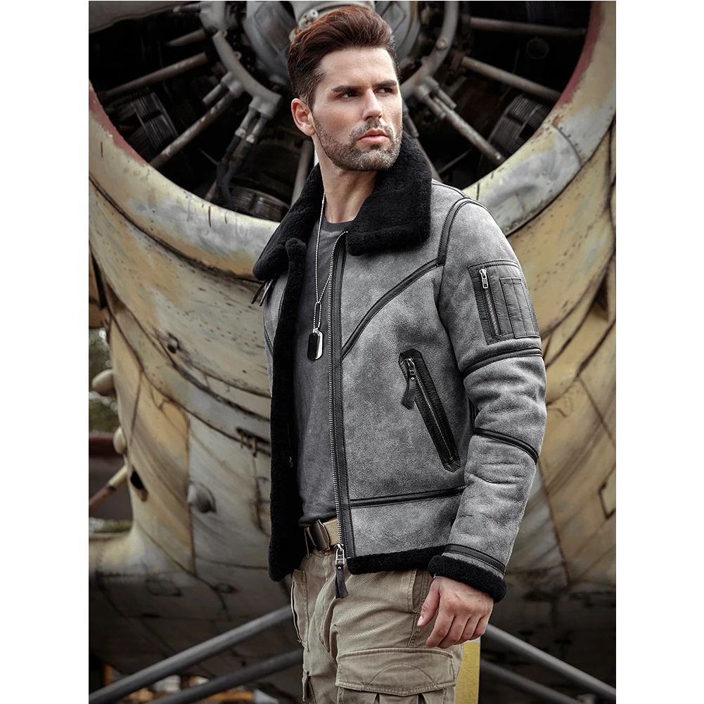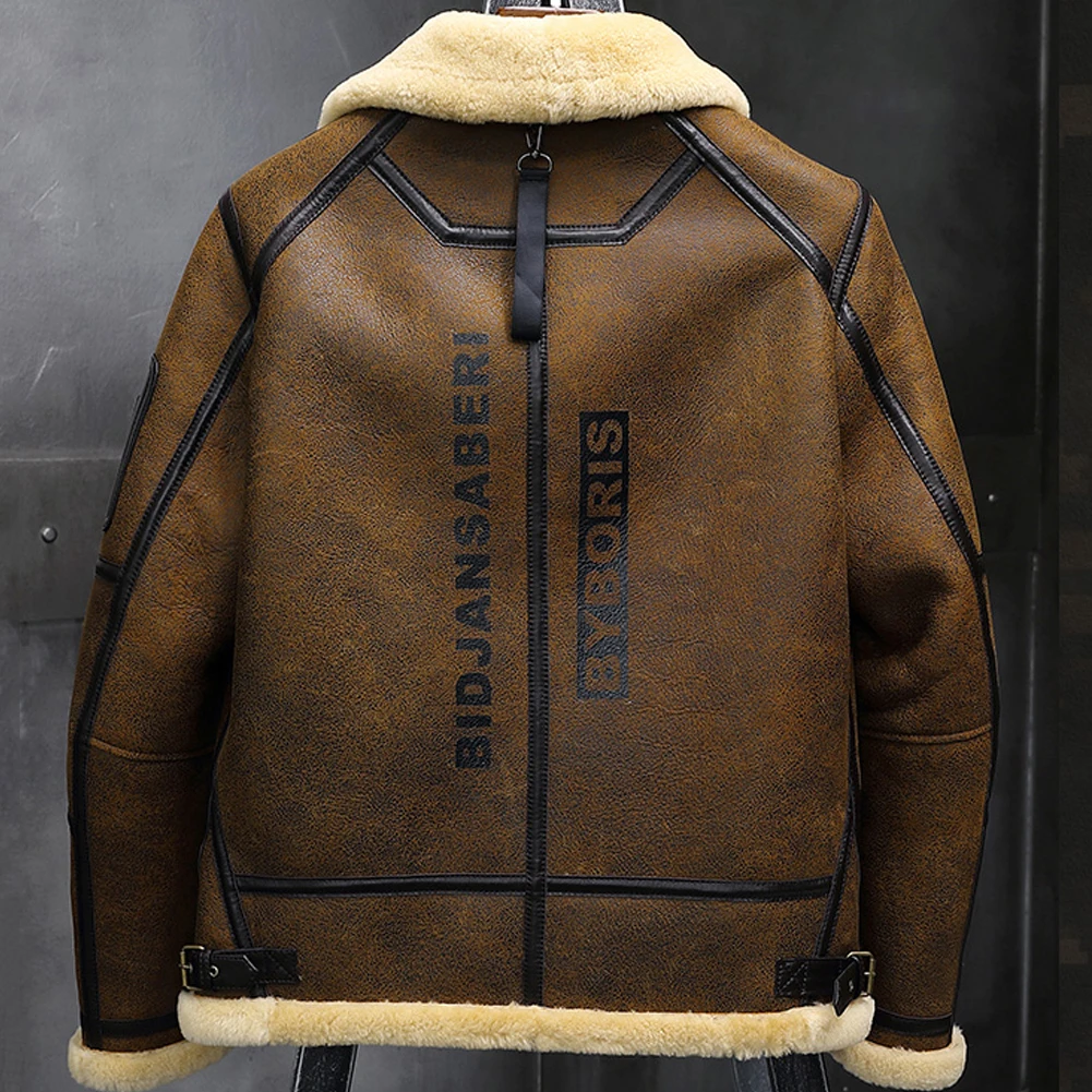 2019 New Mens Shearling Jacket B3 Flight Jacket Sheepskin Aviator Winter Coat Fur Bomber Leather Jacket