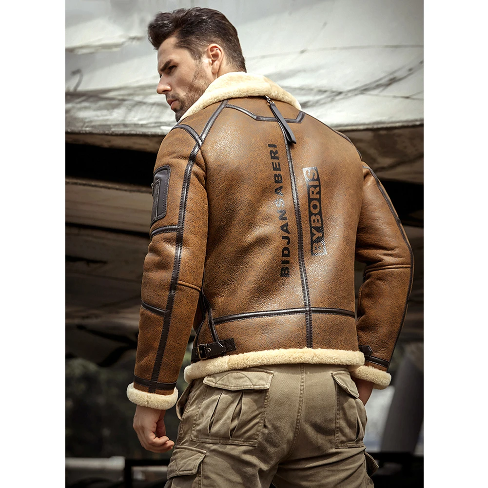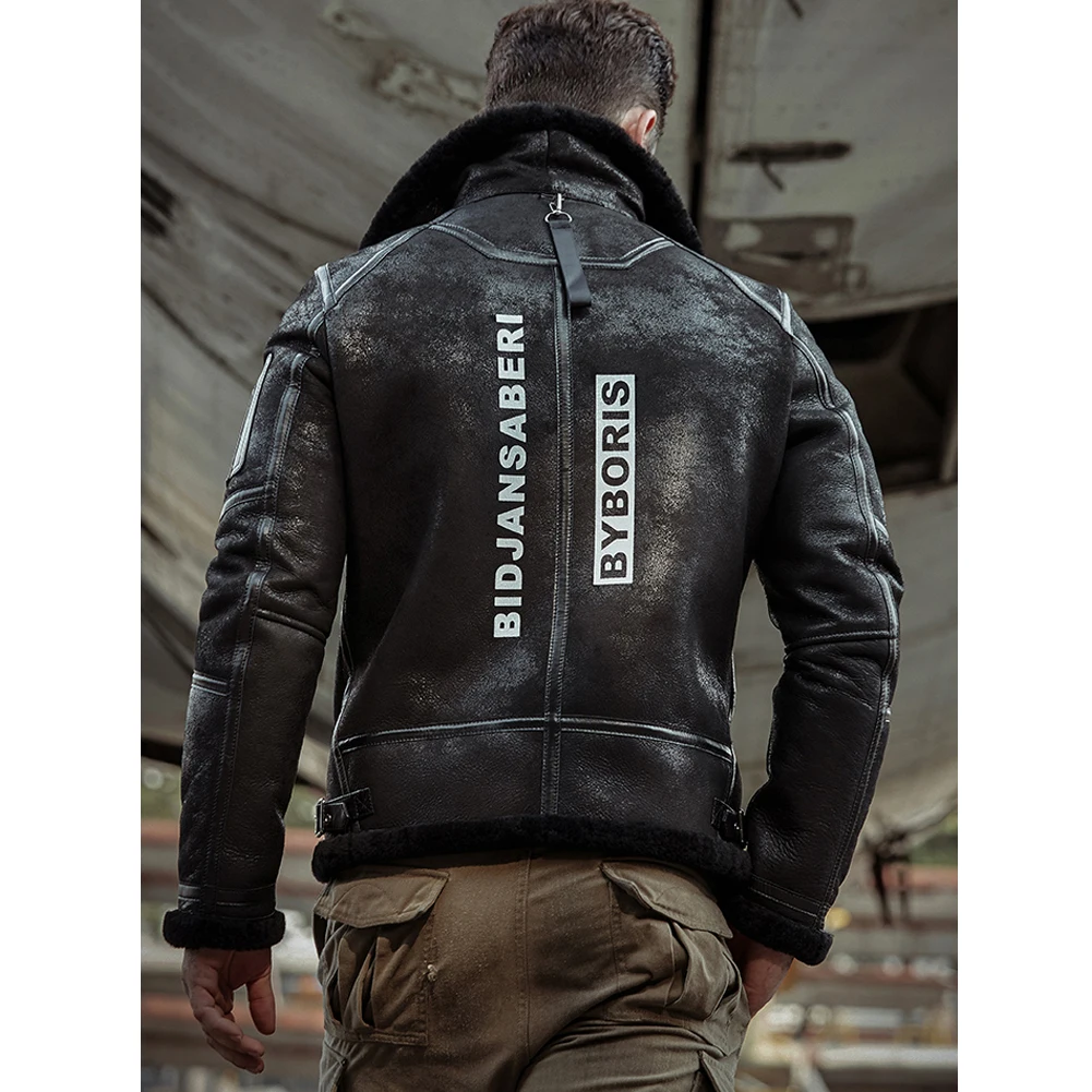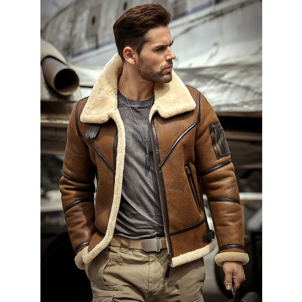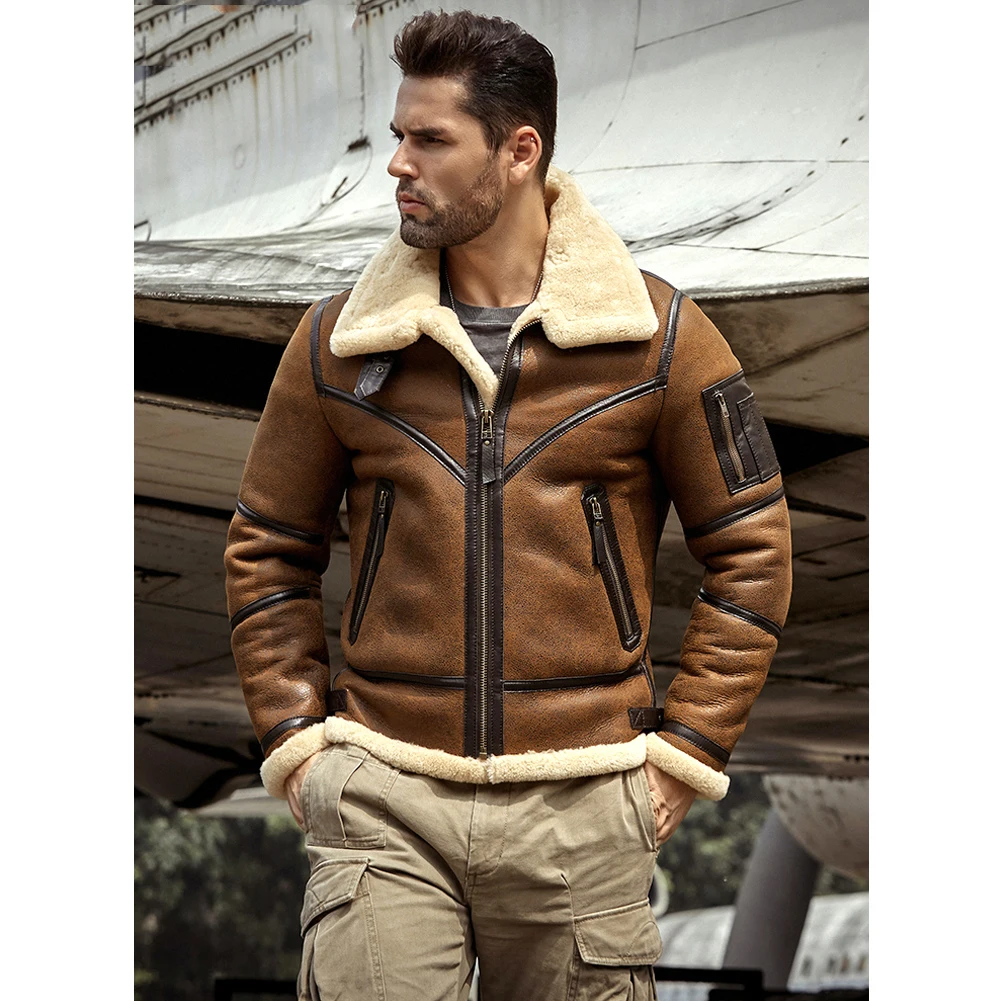 2019 New Mens Shearling Jacket B3 Flight Jacket Sheepskin Aviator Winter Coat Fur Bomber Leather Jacket