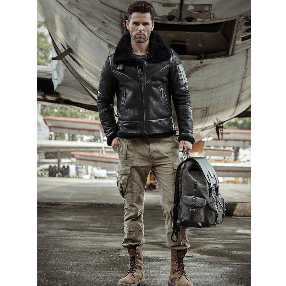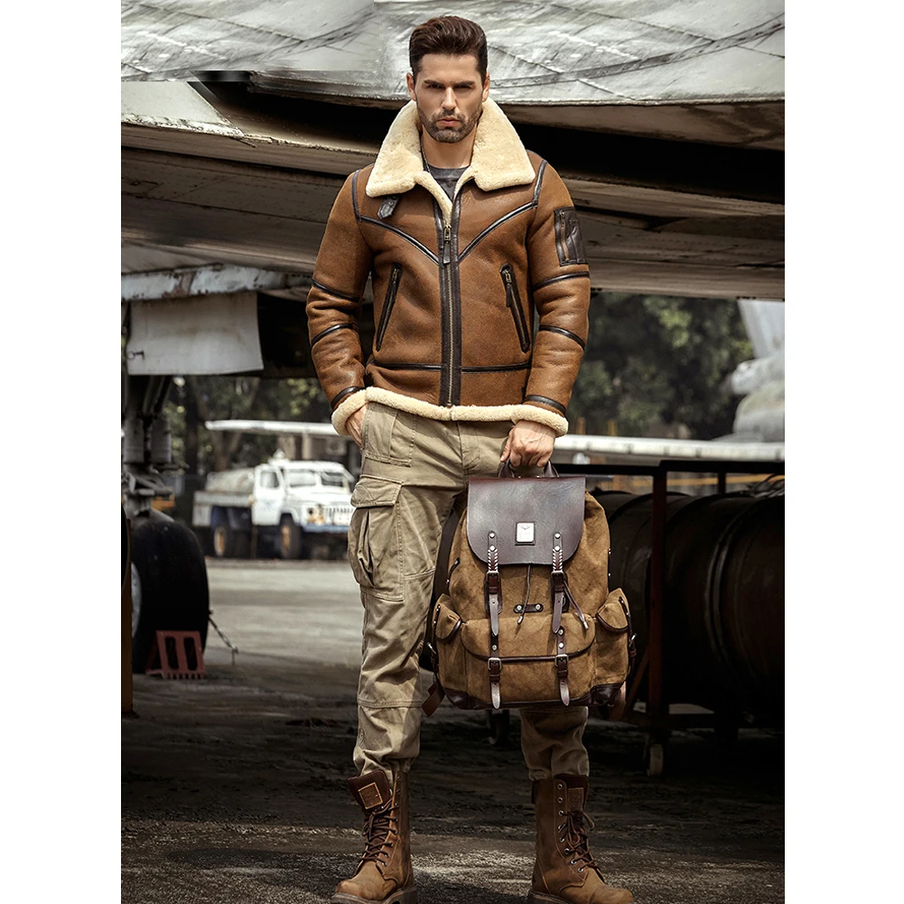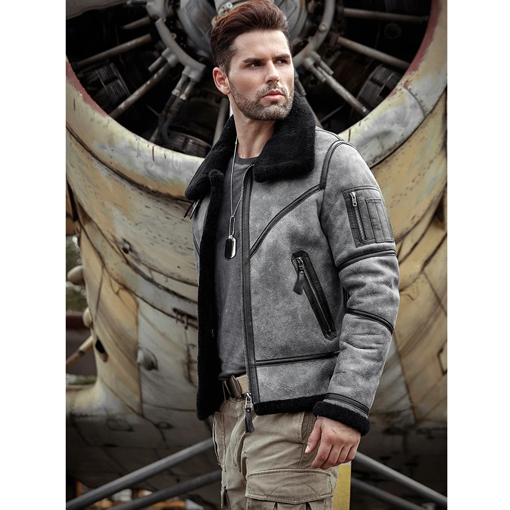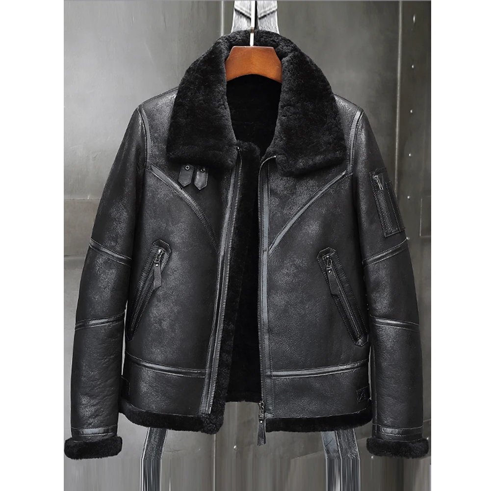 2019 New Mens Shearling Jacket B3 Flight Jacket Sheepskin Aviator Winter Coat Fur Bomber Leather Jacket