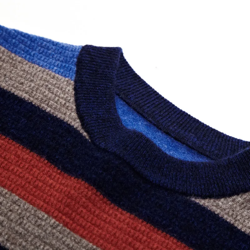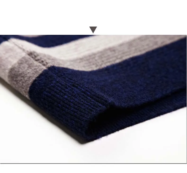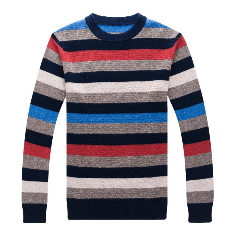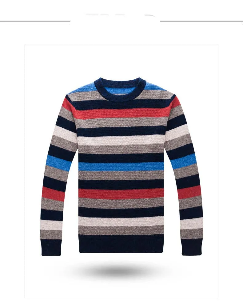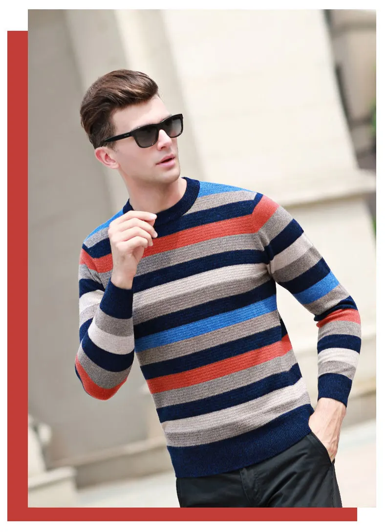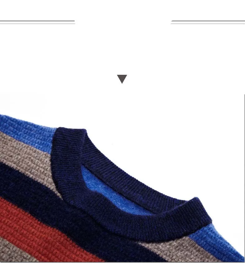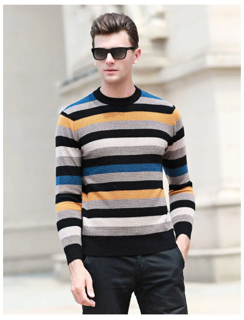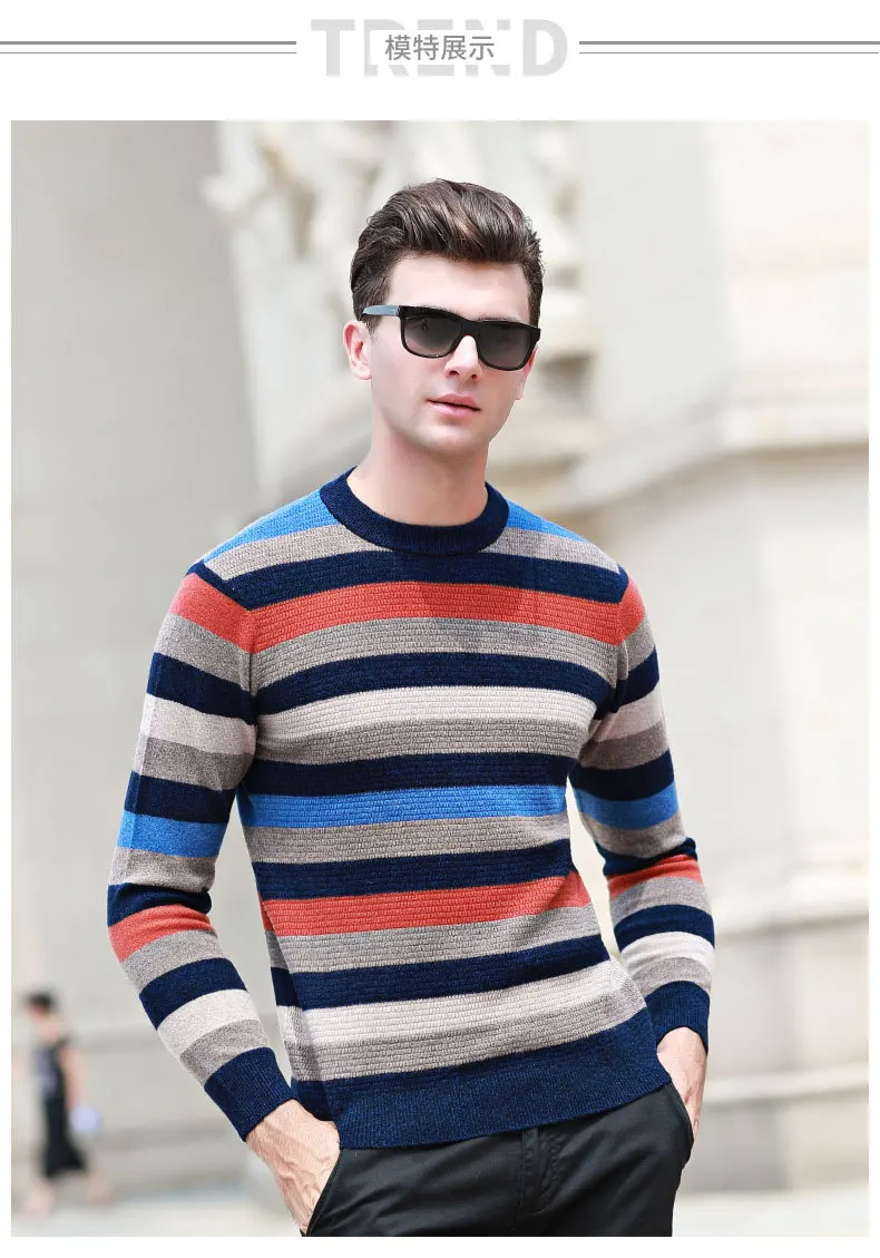 2019 Spring New Striped Sweater Men Contrast Color Slim Fit 100% woolen O-neck Plus Size Knitted Pullovers