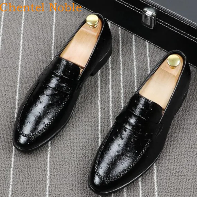 2020 Brand Chentel Classic Fashion Black Mens Dress Shoes Leather Slip-On Loafters For Business British Mens Shoes Two Style