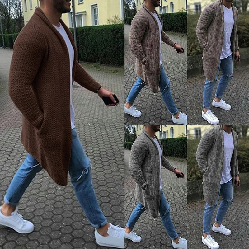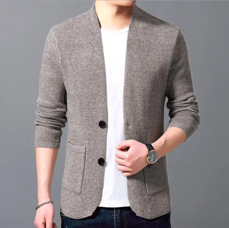 2020 Fashion Solid Men Cardigan Streetwear Long Sleeve Knitted Sweaters Casual Autumn Mens Slim Fit Sweater Coat
