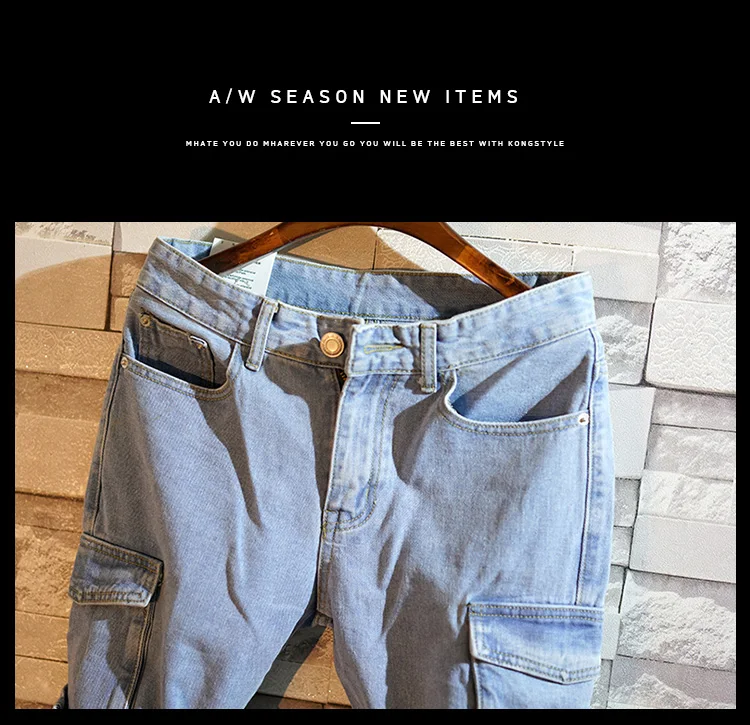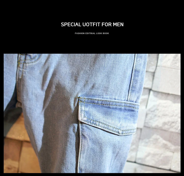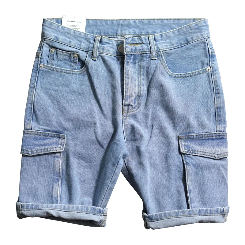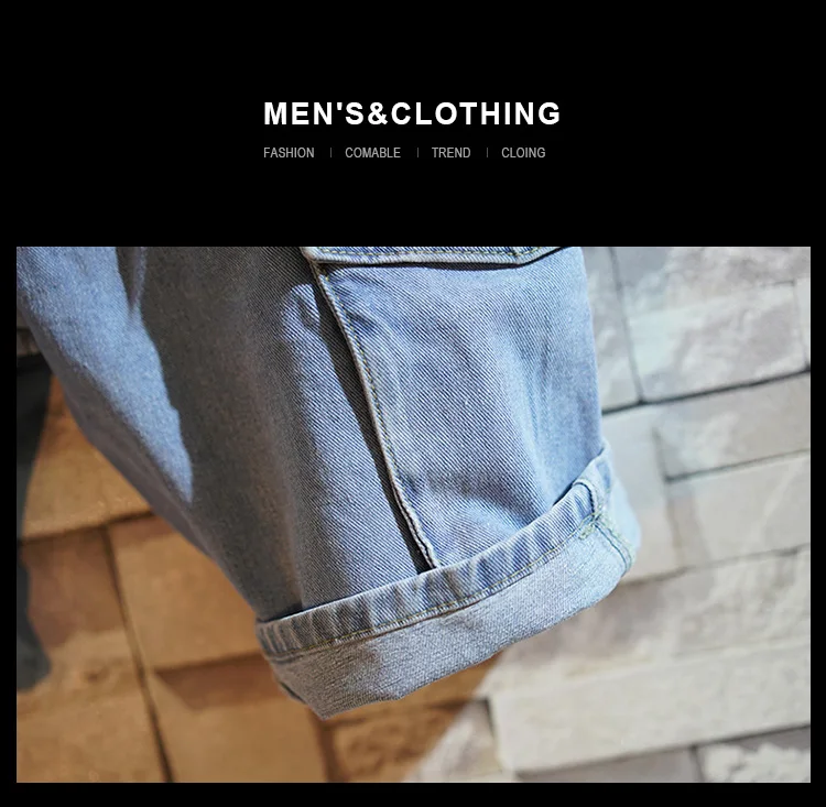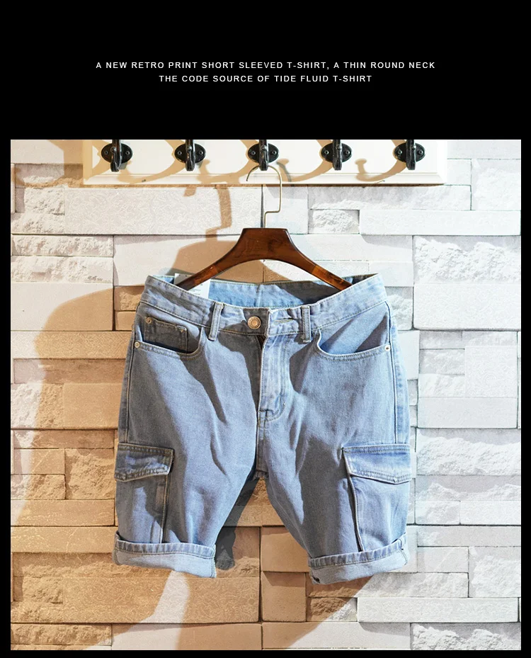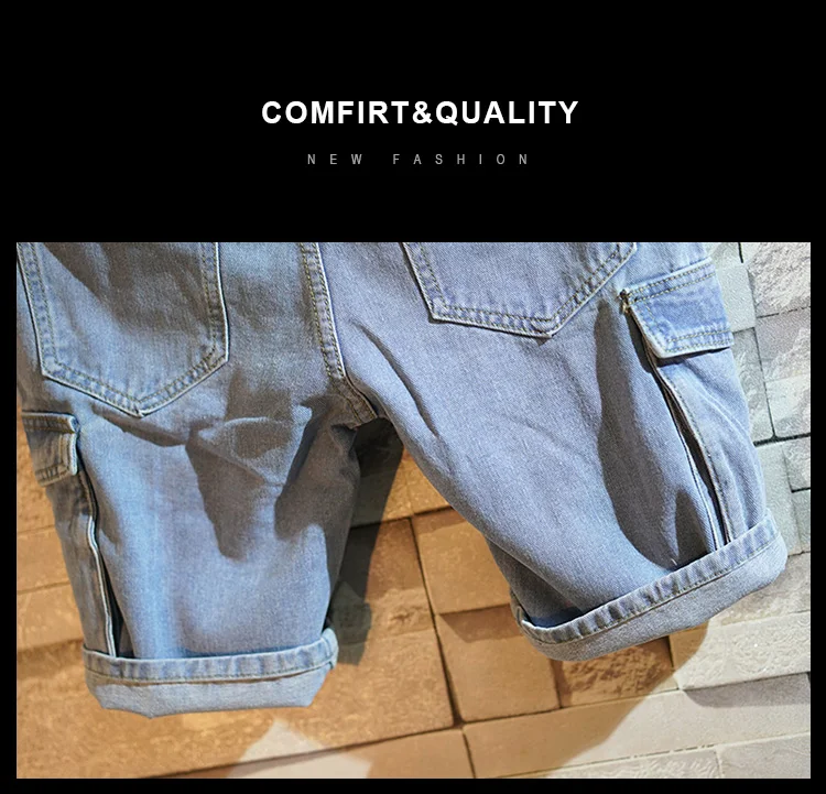 2020 New Arrival Hot Sale Jeans Men Zipper Fly Solid Cargo Pants Japanese Light Color Wash Shorts Straight Tube Overalls Robin