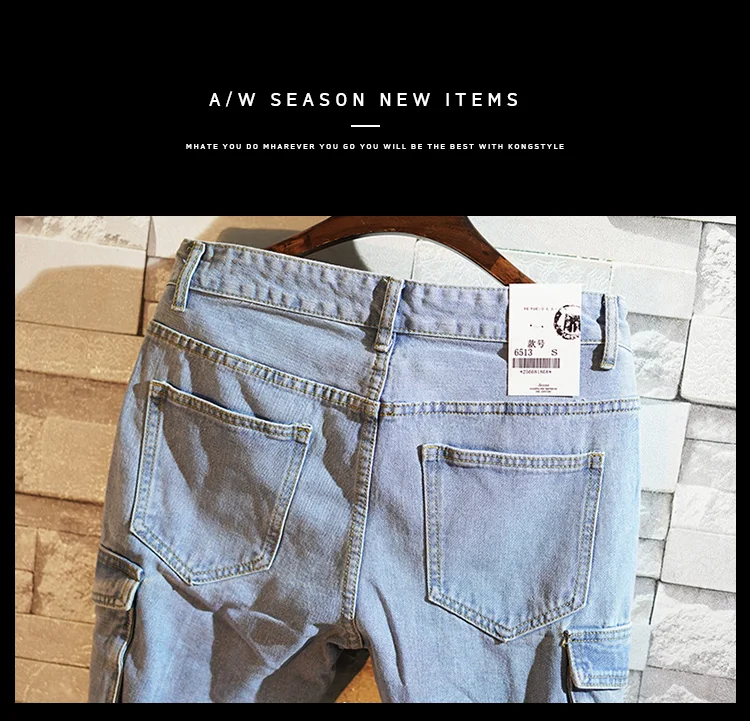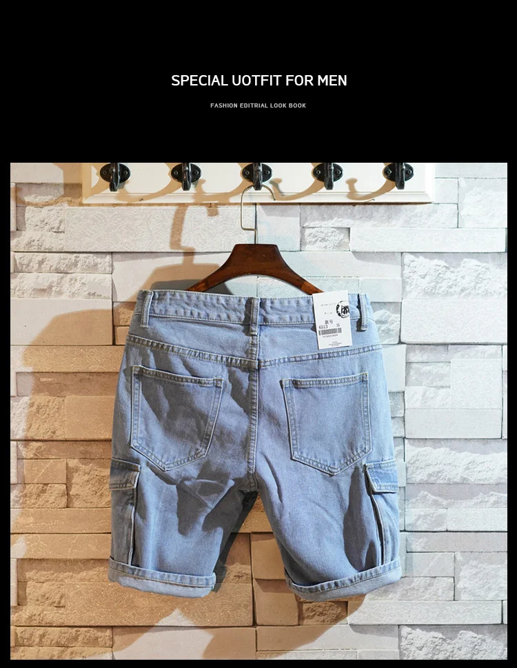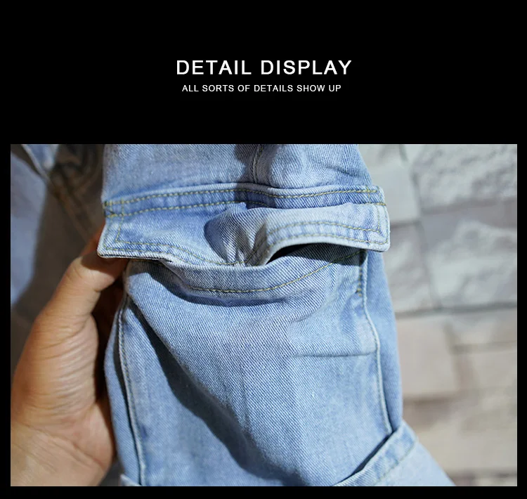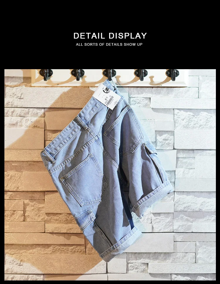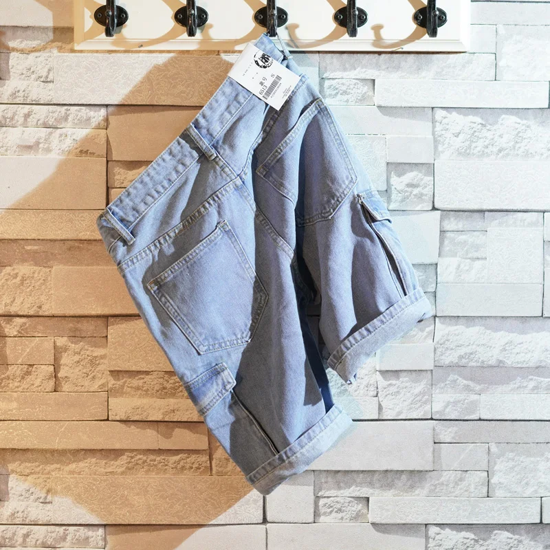 2020 New Arrival Hot Sale Jeans Men Zipper Fly Solid Cargo Pants Japanese Light Color Wash Shorts Straight Tube Overalls Robin