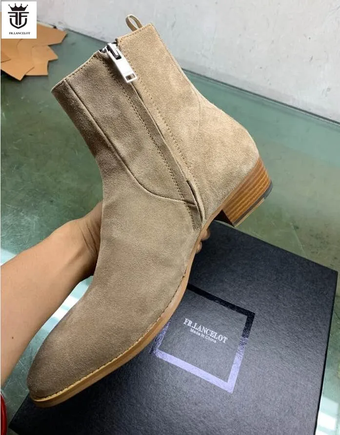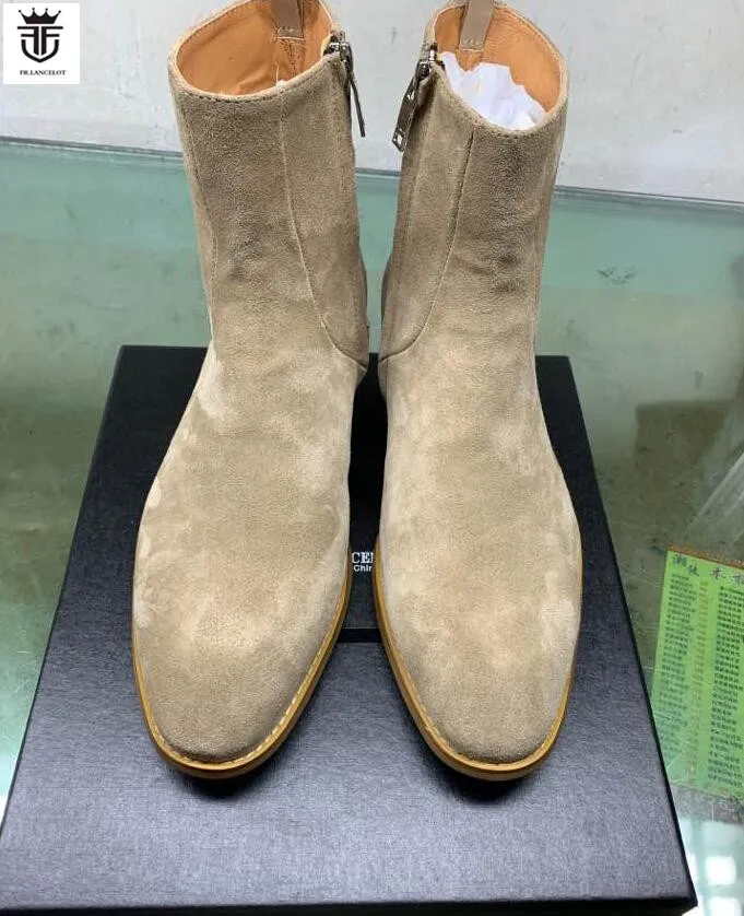 2020 New arrival men chelsea boots high end suede leather boots ankle male party shoes wedding shoes side zip mujer botas