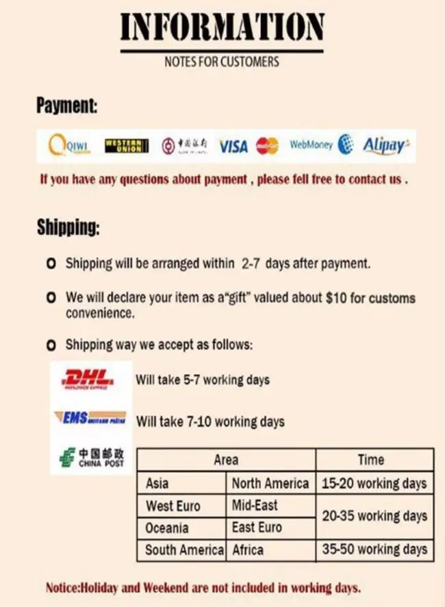 • If you did not receive the product within the guaranteed time( 45 days not including 2-5 day processing) you can request a refund or a reshipment.
