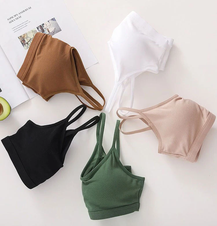 3.Undetachable cup pad, unadjustable shoulder strap design.