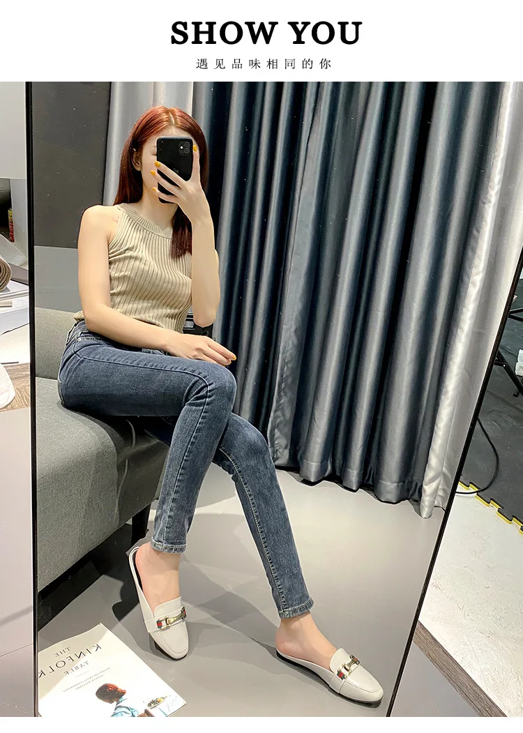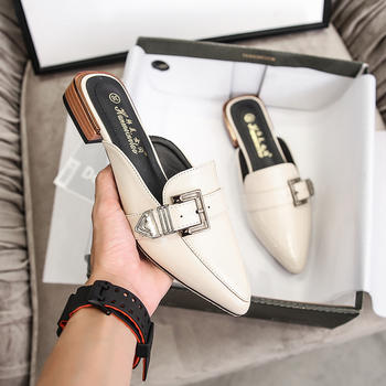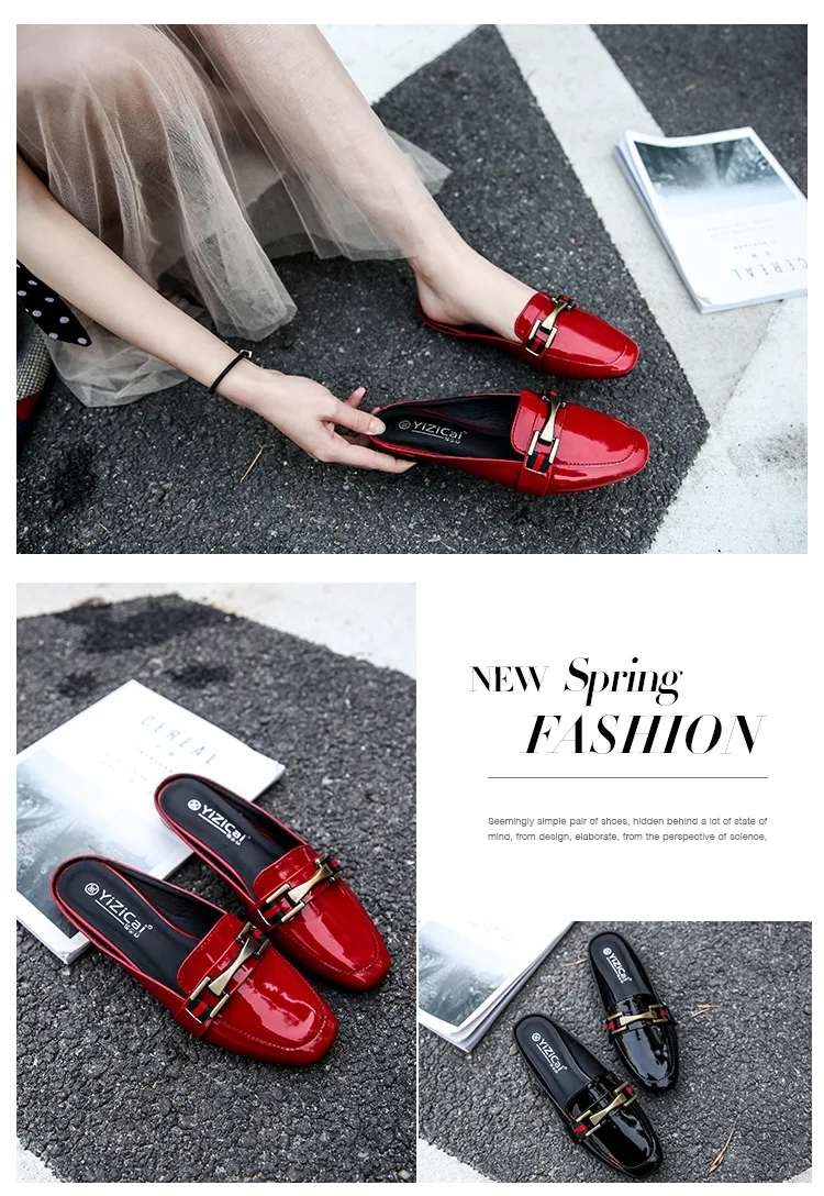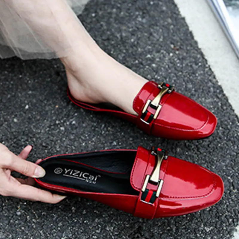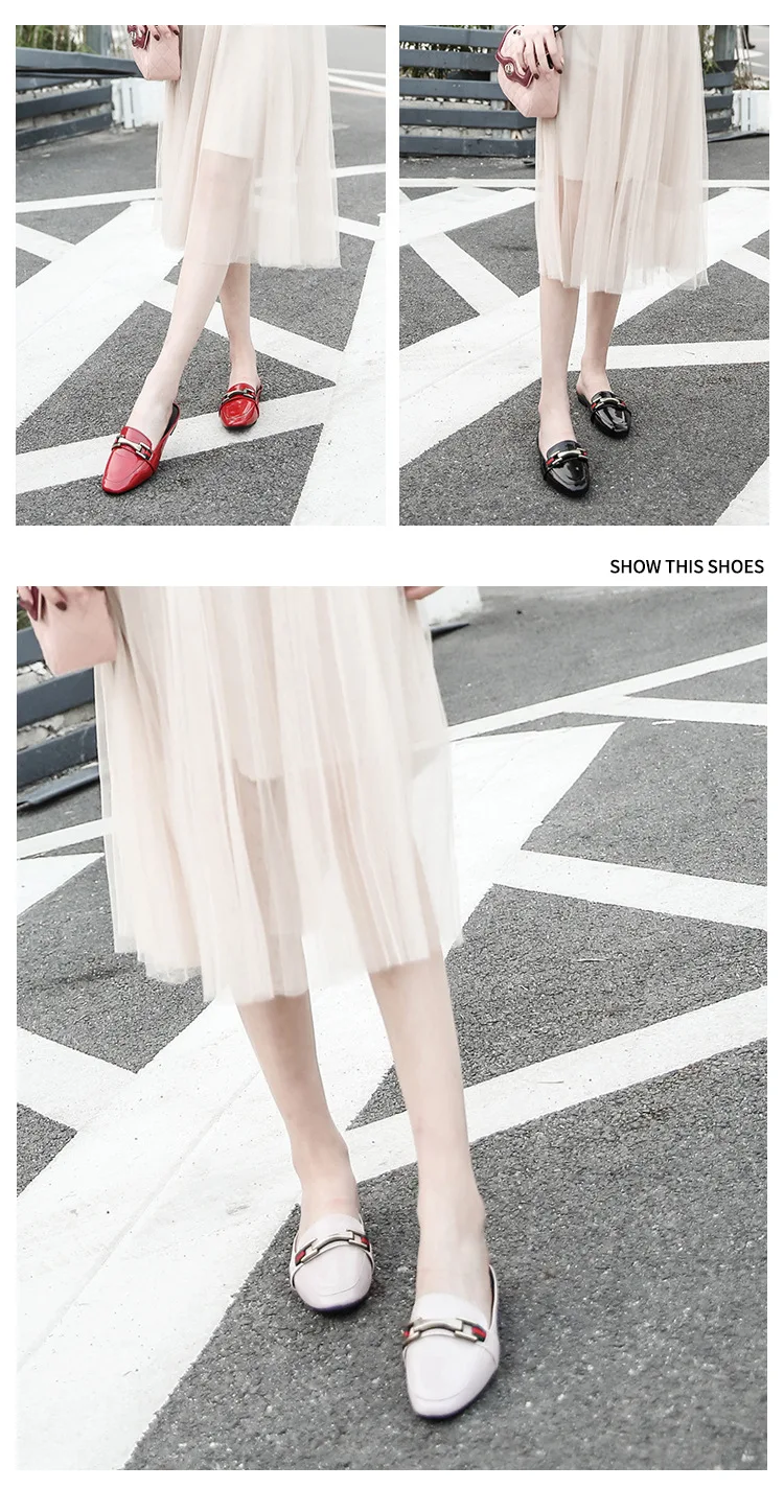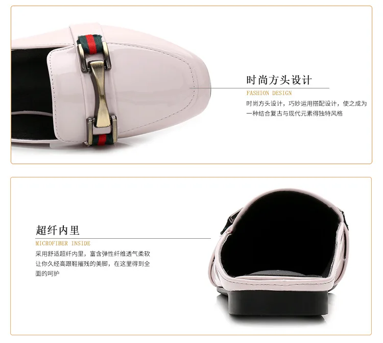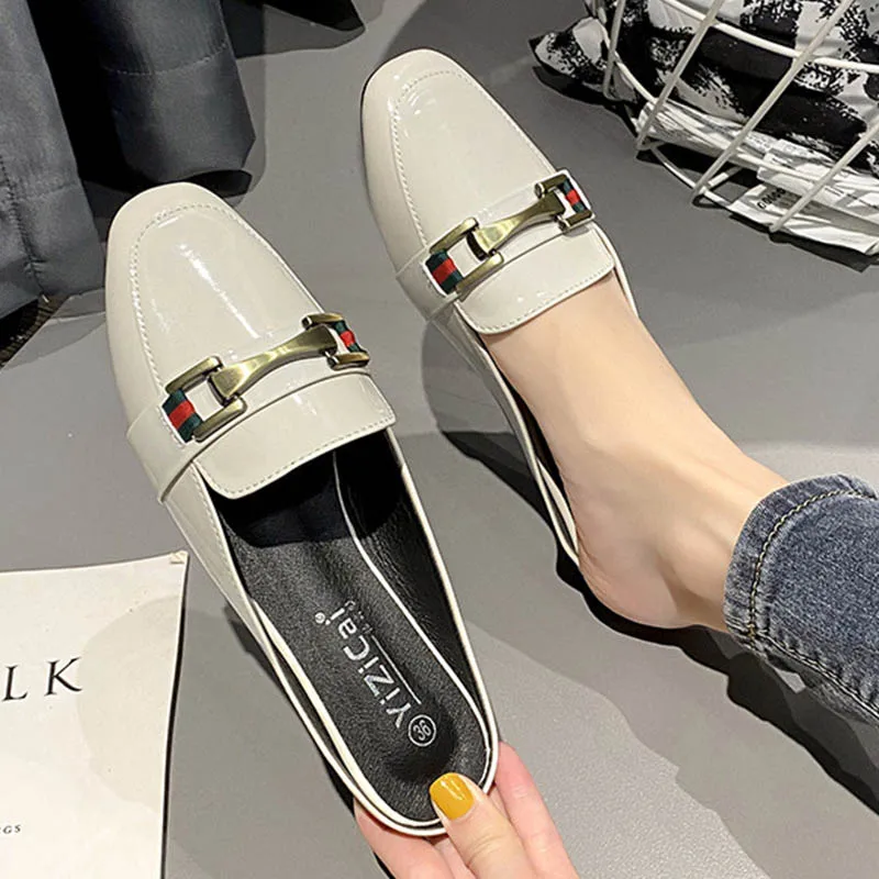 2020 Patent Leather metal buckle square toe mules woman slides women shoes sandals flip flops cover roe slippers women size34-42