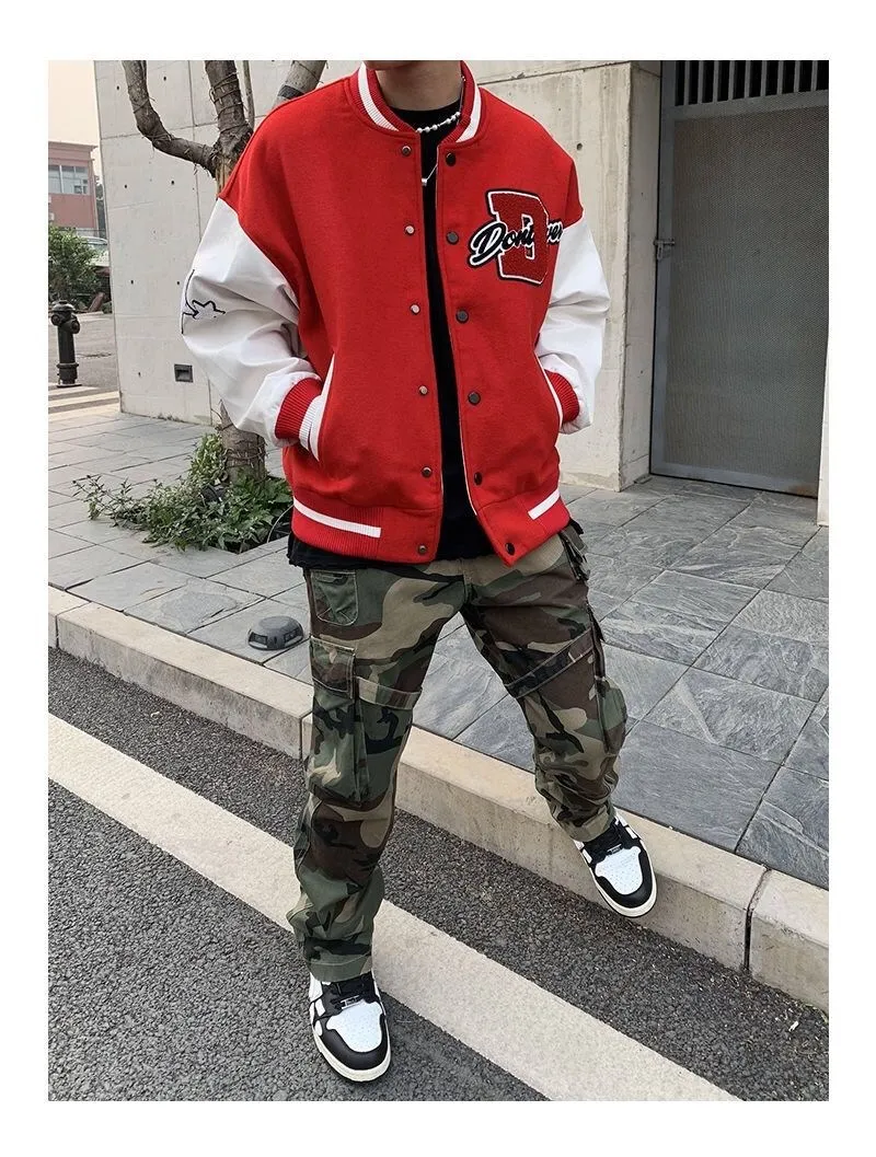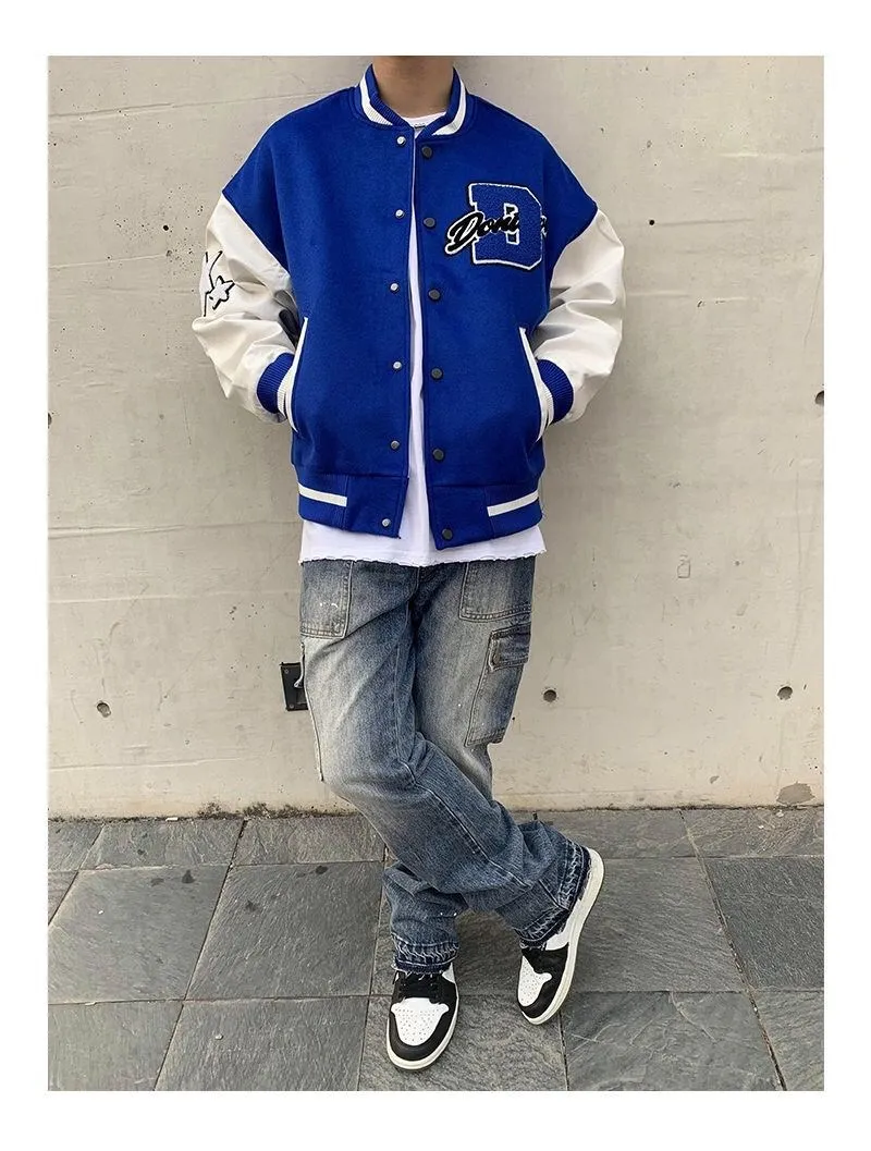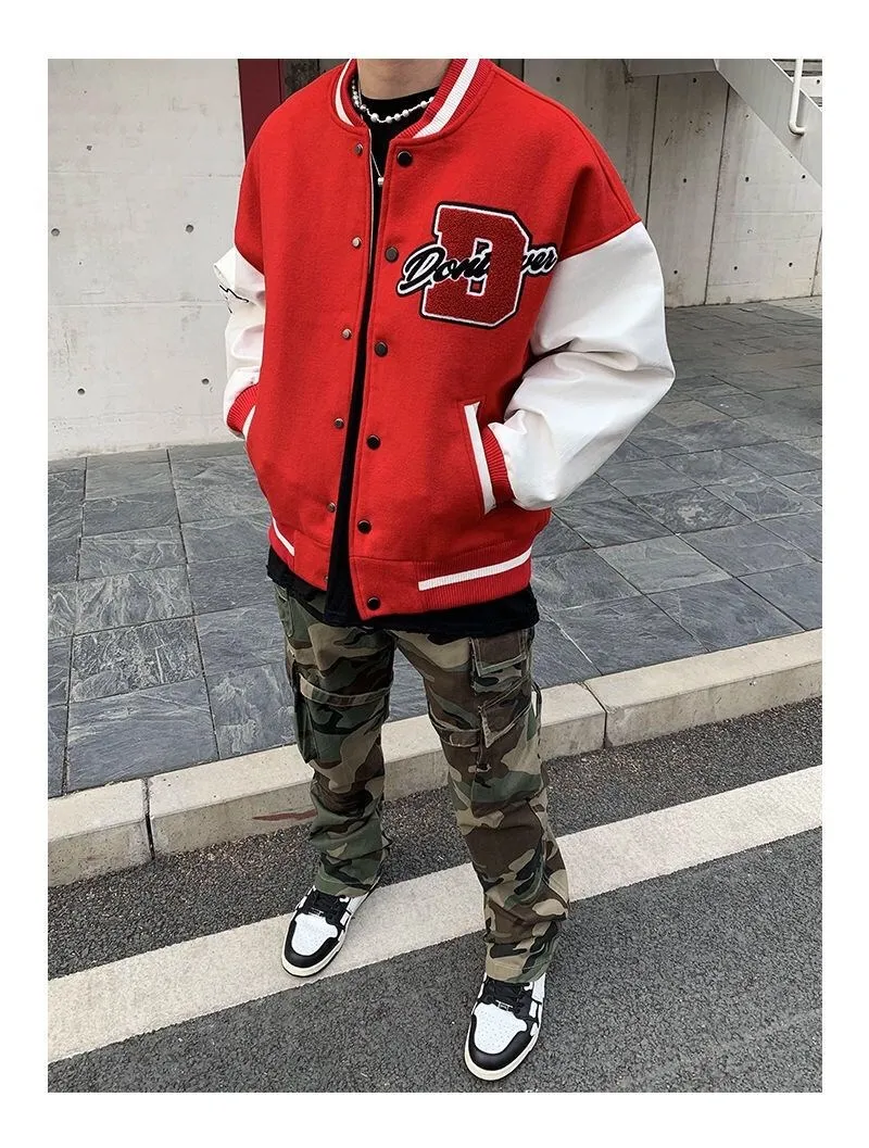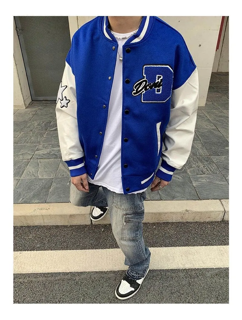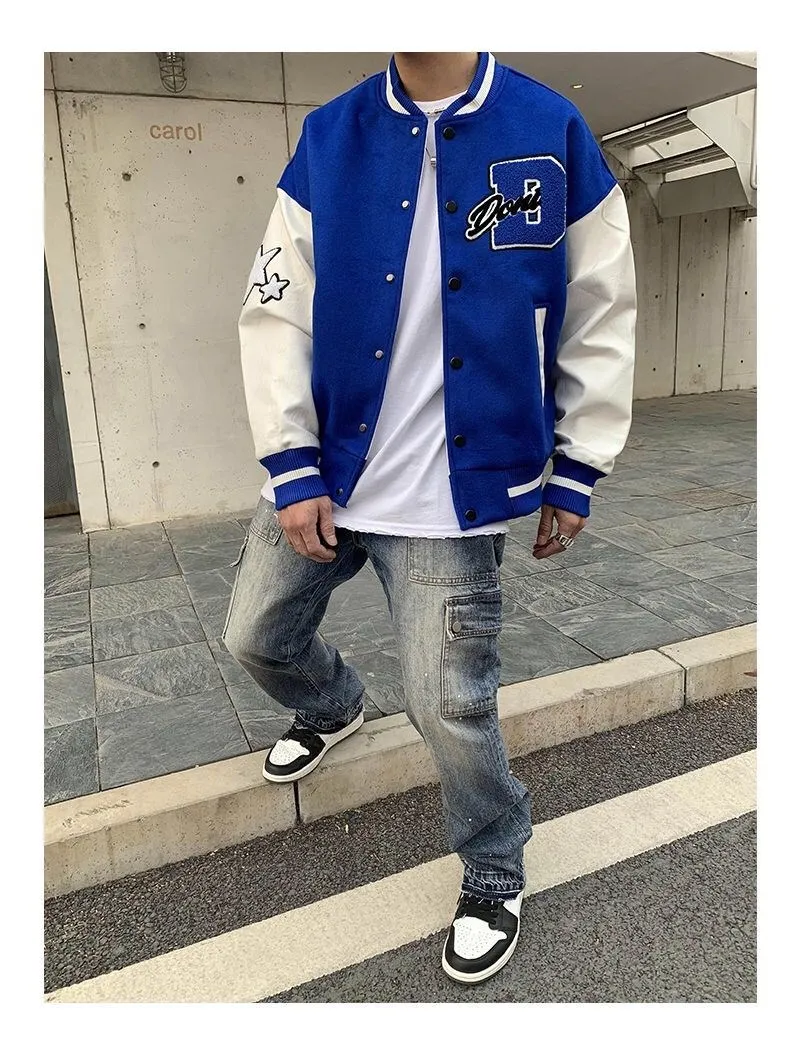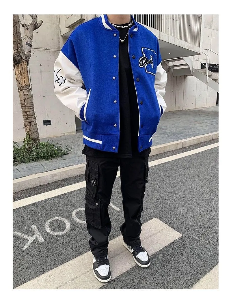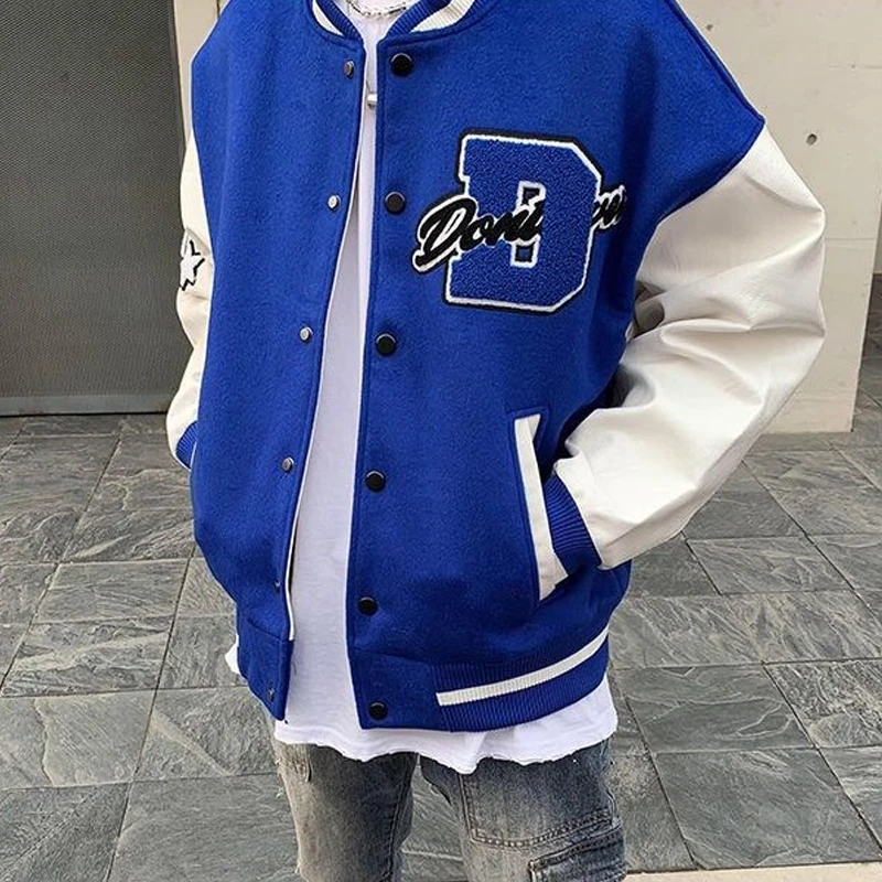 2020 Top Fashion Casual Single Breasted Spliced Rib Sleeve Brand Clothing Bomber Jacket Men Baseball Uniform Male Loose Coat