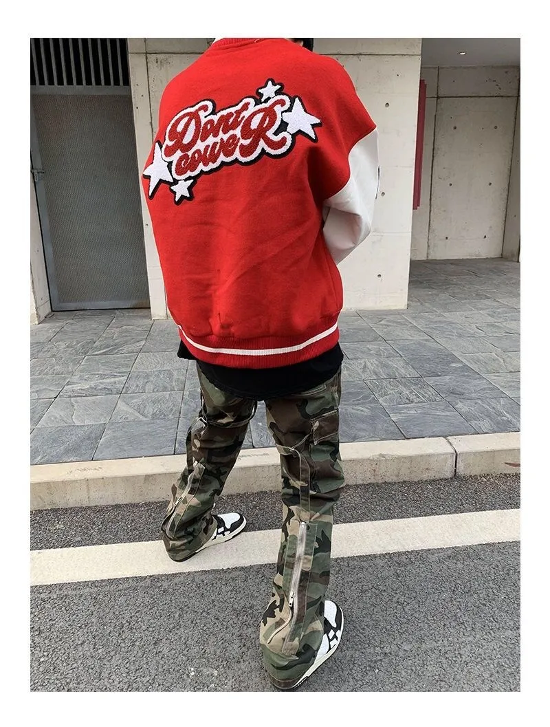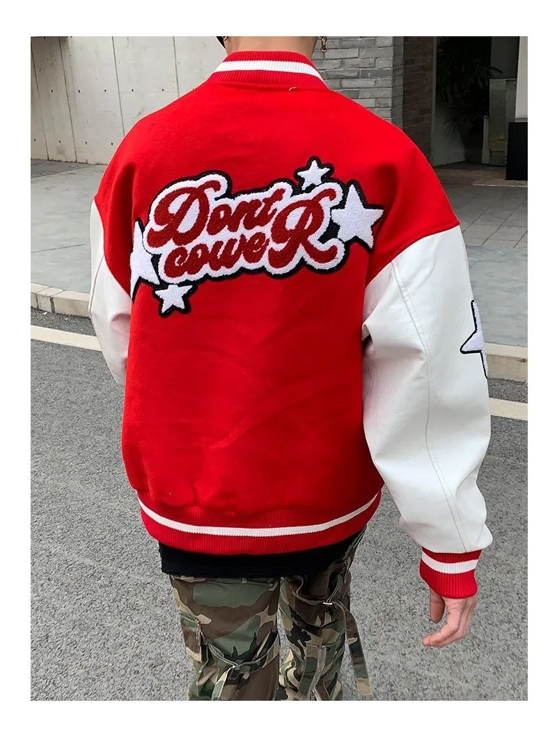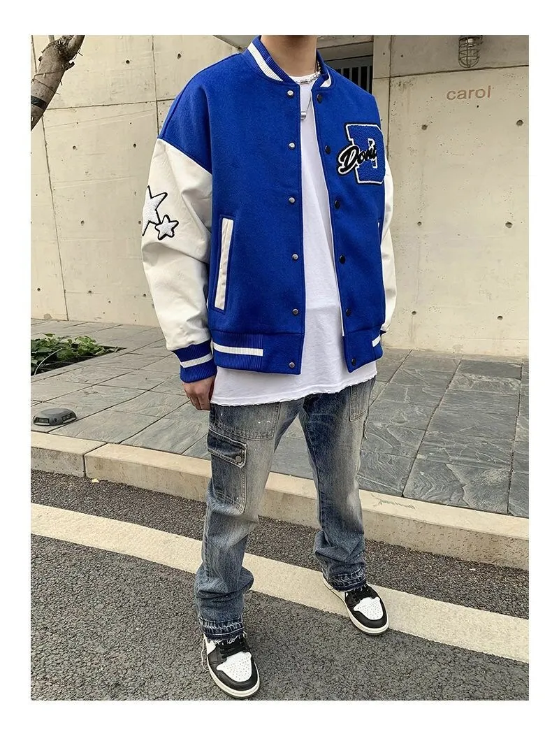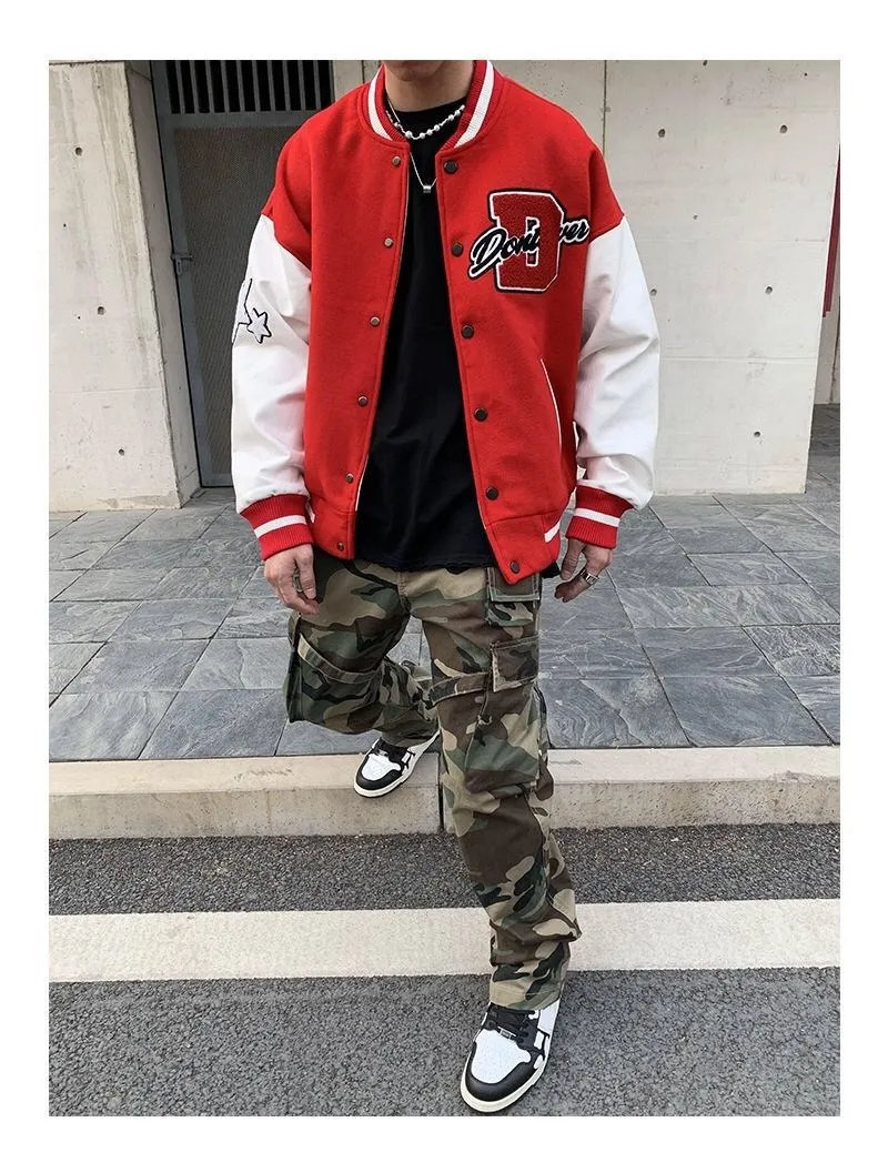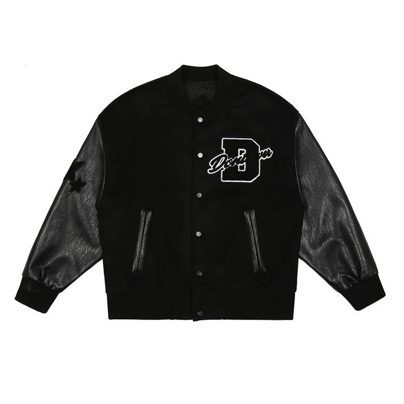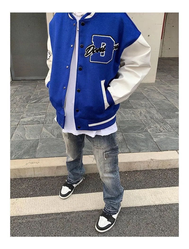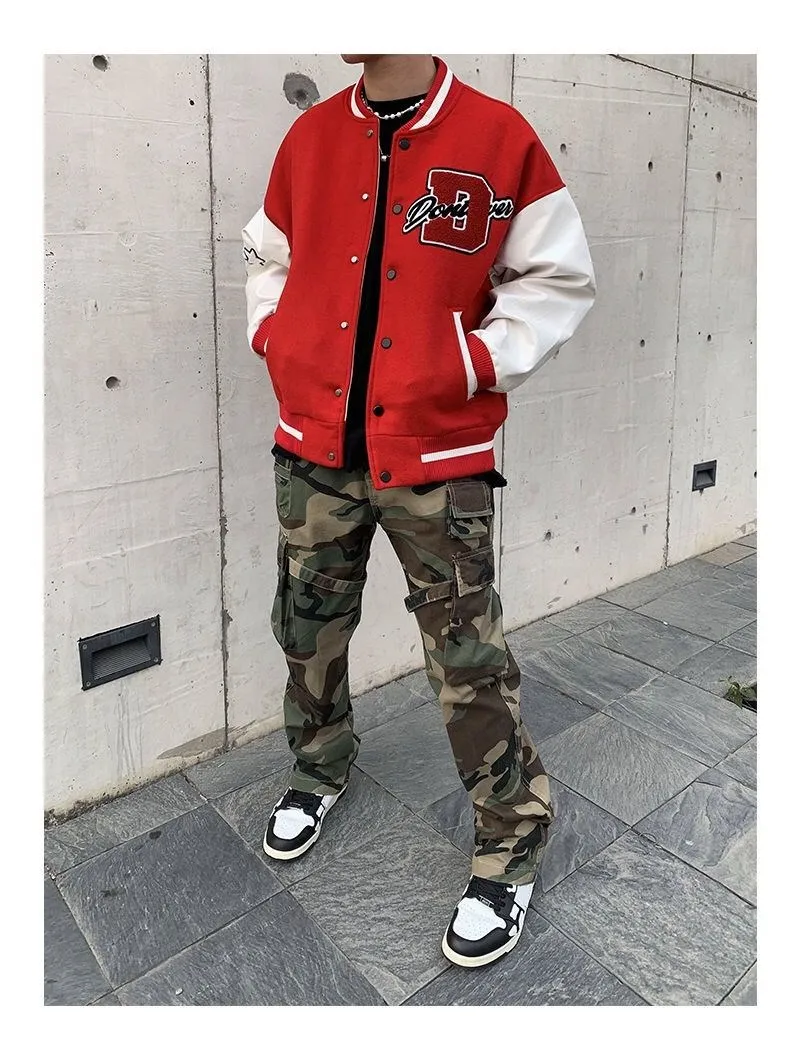 2020 Top Fashion Casual Single Breasted Spliced Rib Sleeve Brand Clothing Bomber Jacket Men Baseball Uniform Male Loose Coat